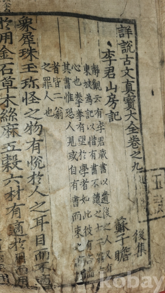 고문진보(古文眞寶) 이군산방기(李君山房記) 글이 보이는 서책(書冊)입니다,