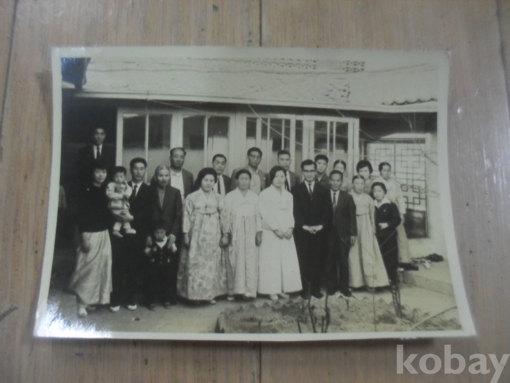 1307h)60년대 집마당에서 신혼부부와 가족친지들 사진.