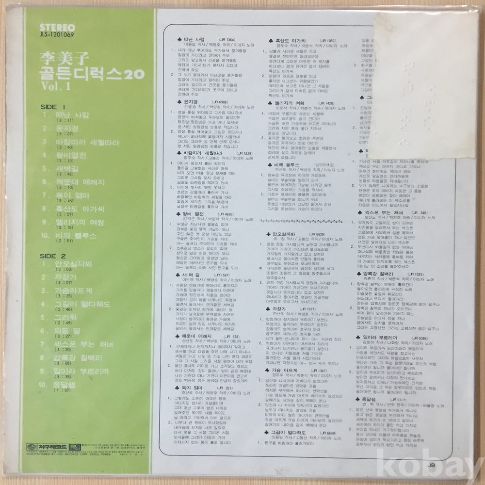. 가요음반 대부분은 휘어짐이나 손상을 방지하기 위해 무지싱글자킷을 하나 더 사용하여 보관되었던 음반들입니다.