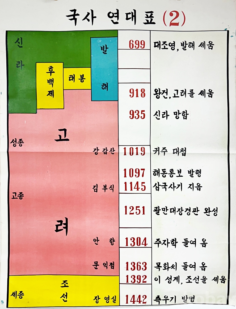 상품 설명 | 발해 건국부터 조선 초기까지의 주요 역사적 사건과 인물을 연대순으로 정리한 국사 연대표 대형 교육용 포스터이다. | ||
