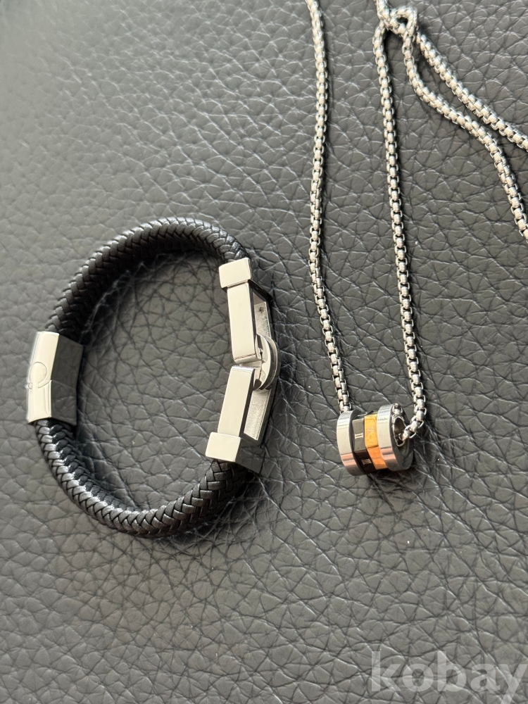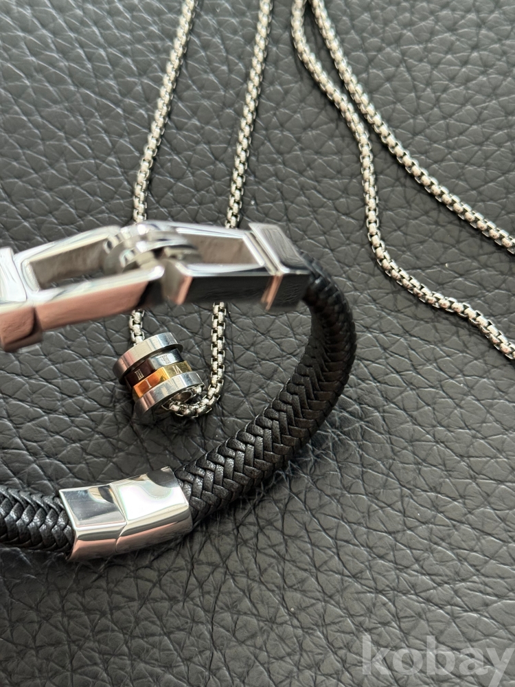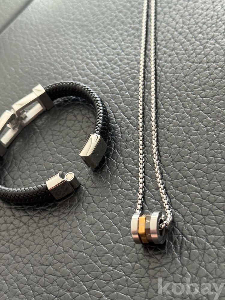 메탈가죽 팔지와 링 목걸이 세트입니다