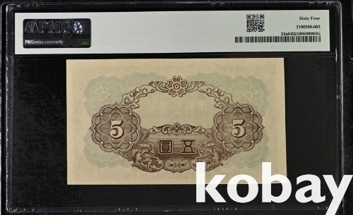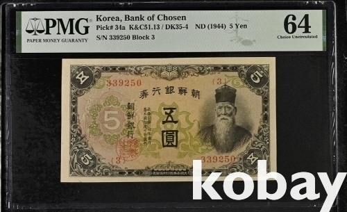 조선은행 갑5원권 유권번호 (64등급) 이며
