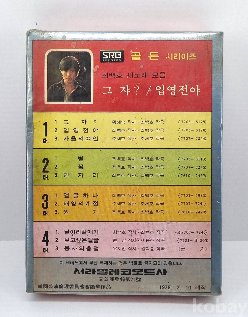 최백호 미개봉 8-Track - '입영전야' 수록 초기 희귀반 (1978년)