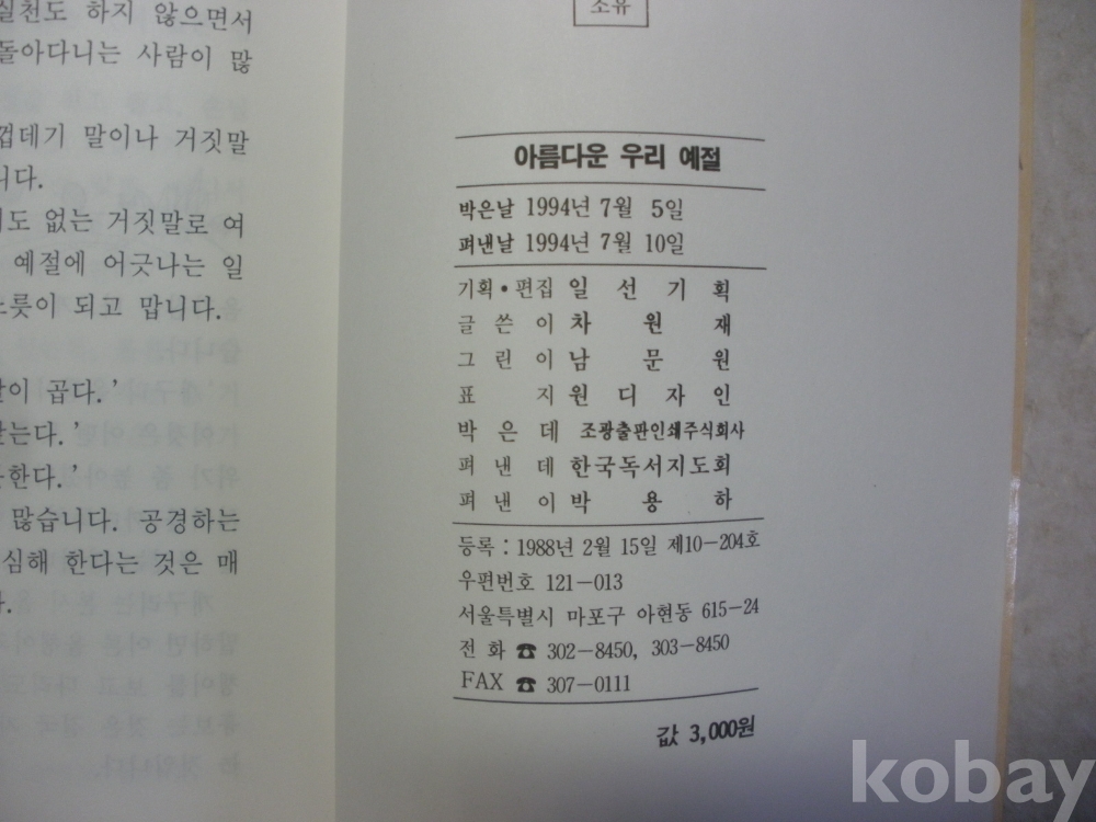 아름다운 우리예절 (1994년, 차원재 저, 한국독서지도회)