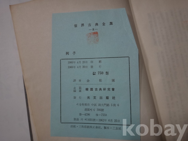 열자 (列子, 1966년, 한국고전연구회, 광문출판사)