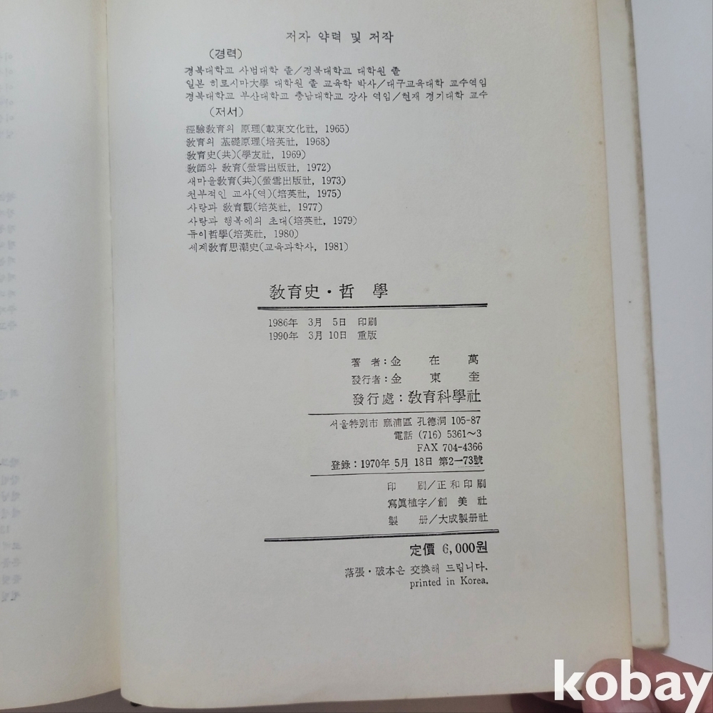 [천원경매] 교육사 철학 / 교육과학사 1990년 발행