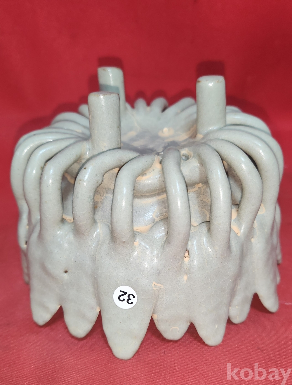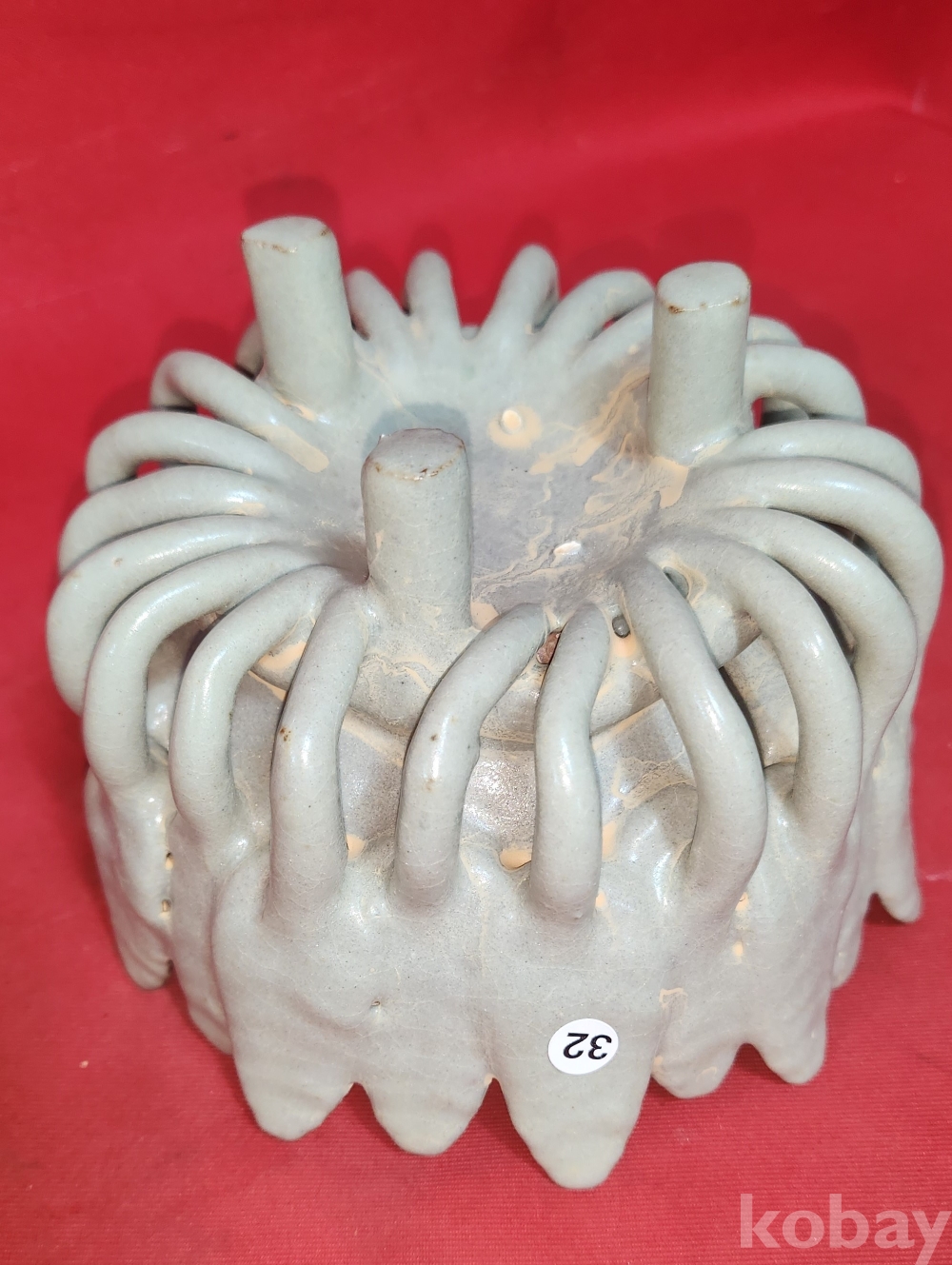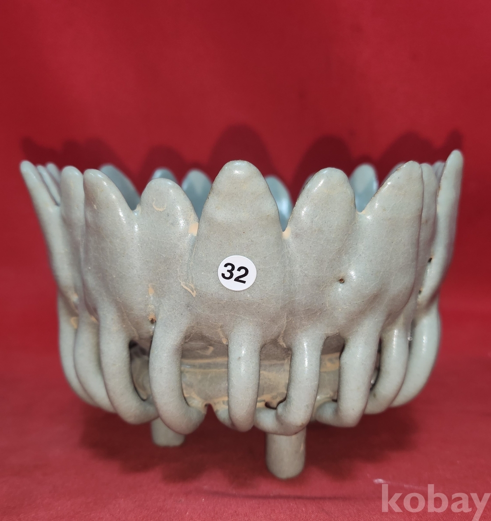청자 투각 꽃잎 화형 문양 삼족 향로겸 향완(香碗)입니다,
