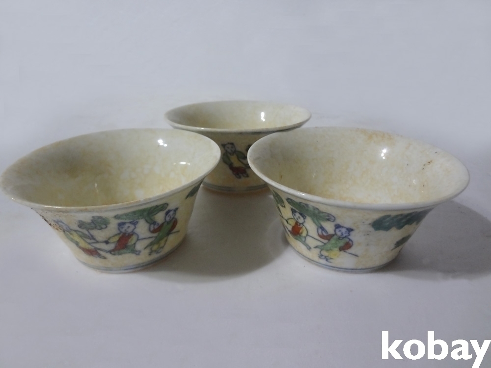 도자기로 만들어진 골동품재현작 잔 3점 입니다.