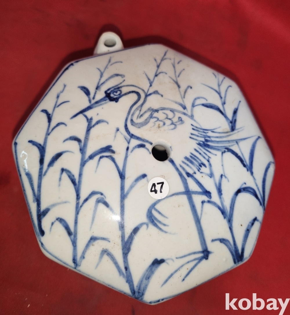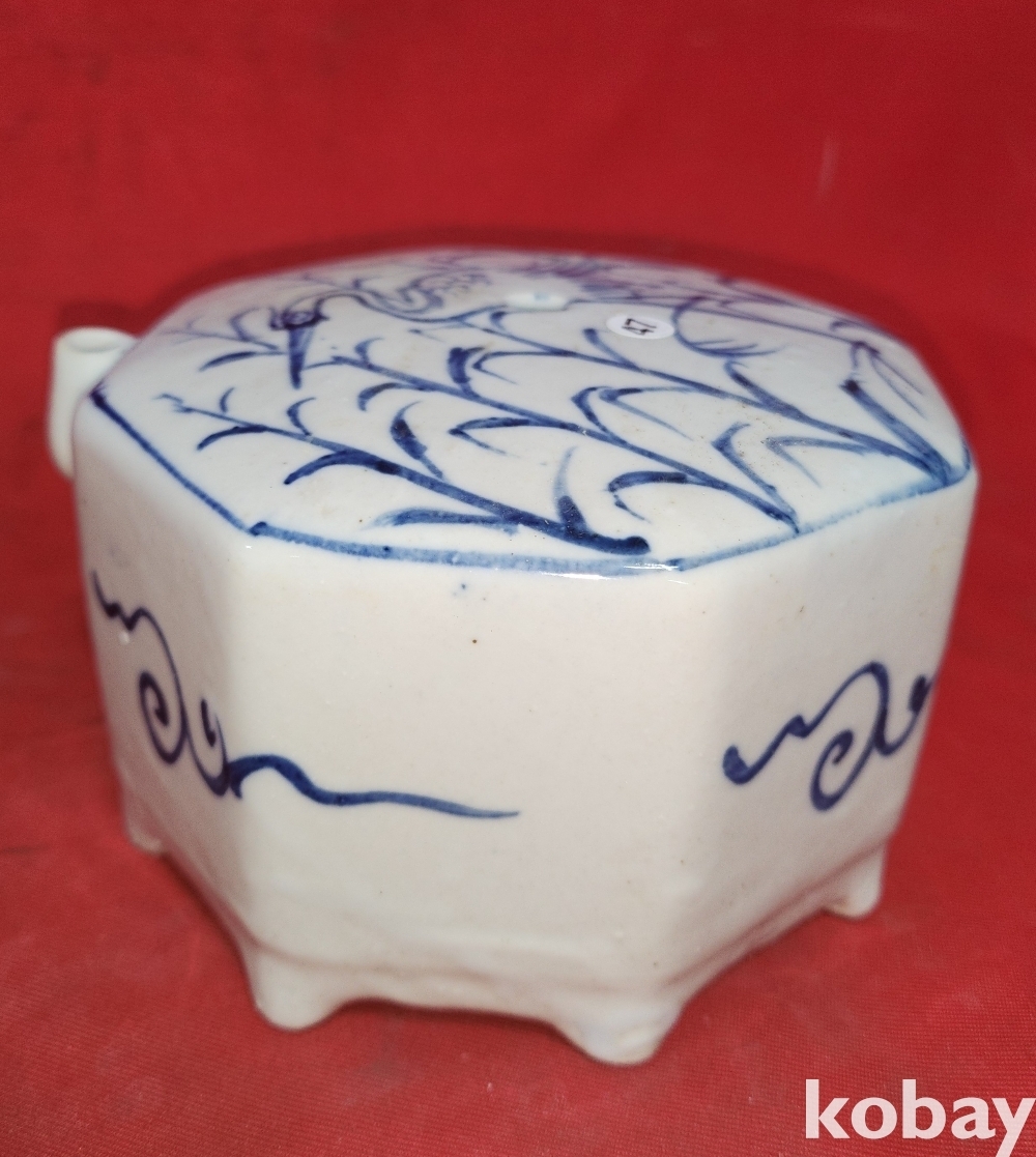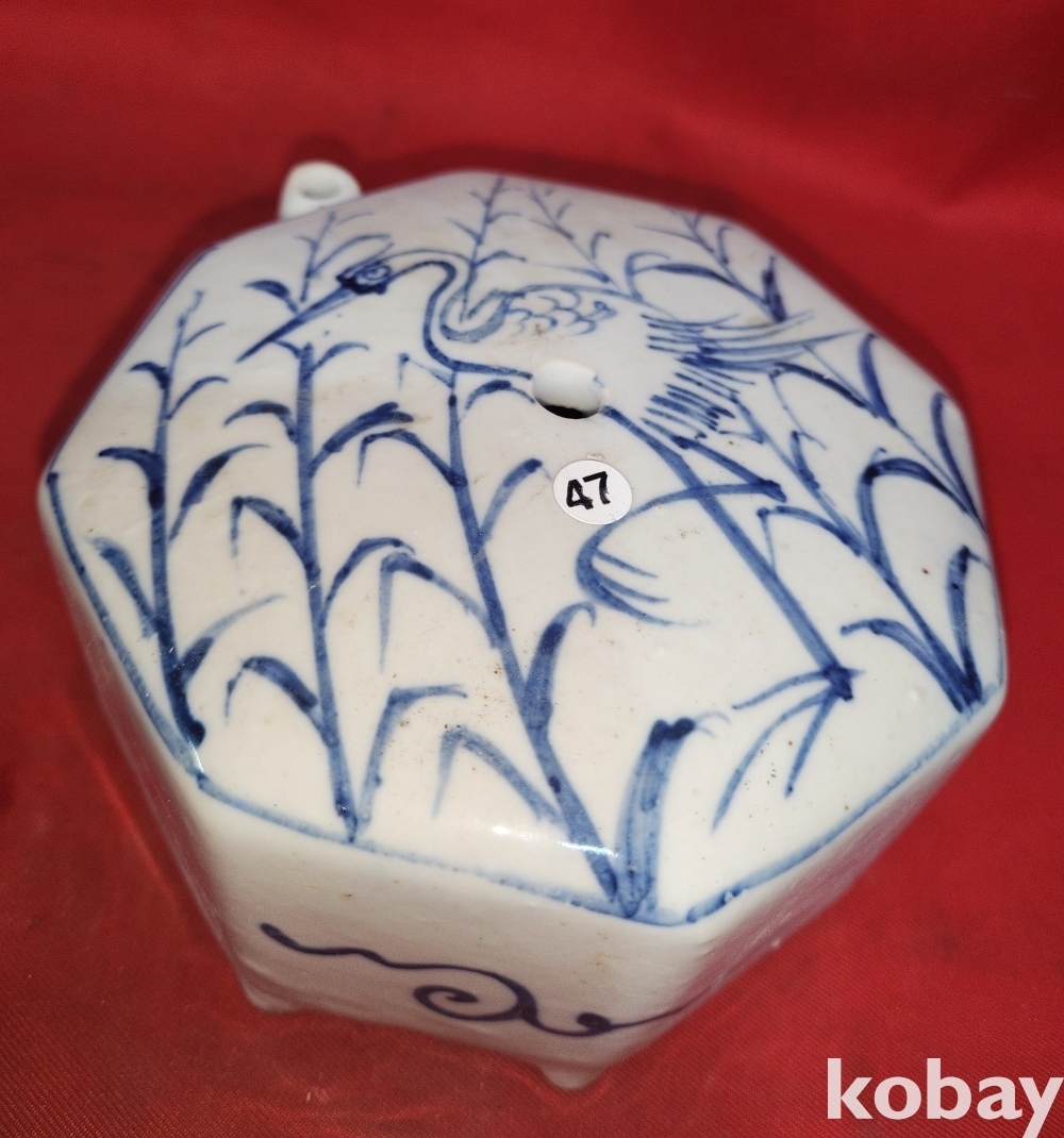 청화백자 갈대와 해오라기 문양 8각 연적입니다,