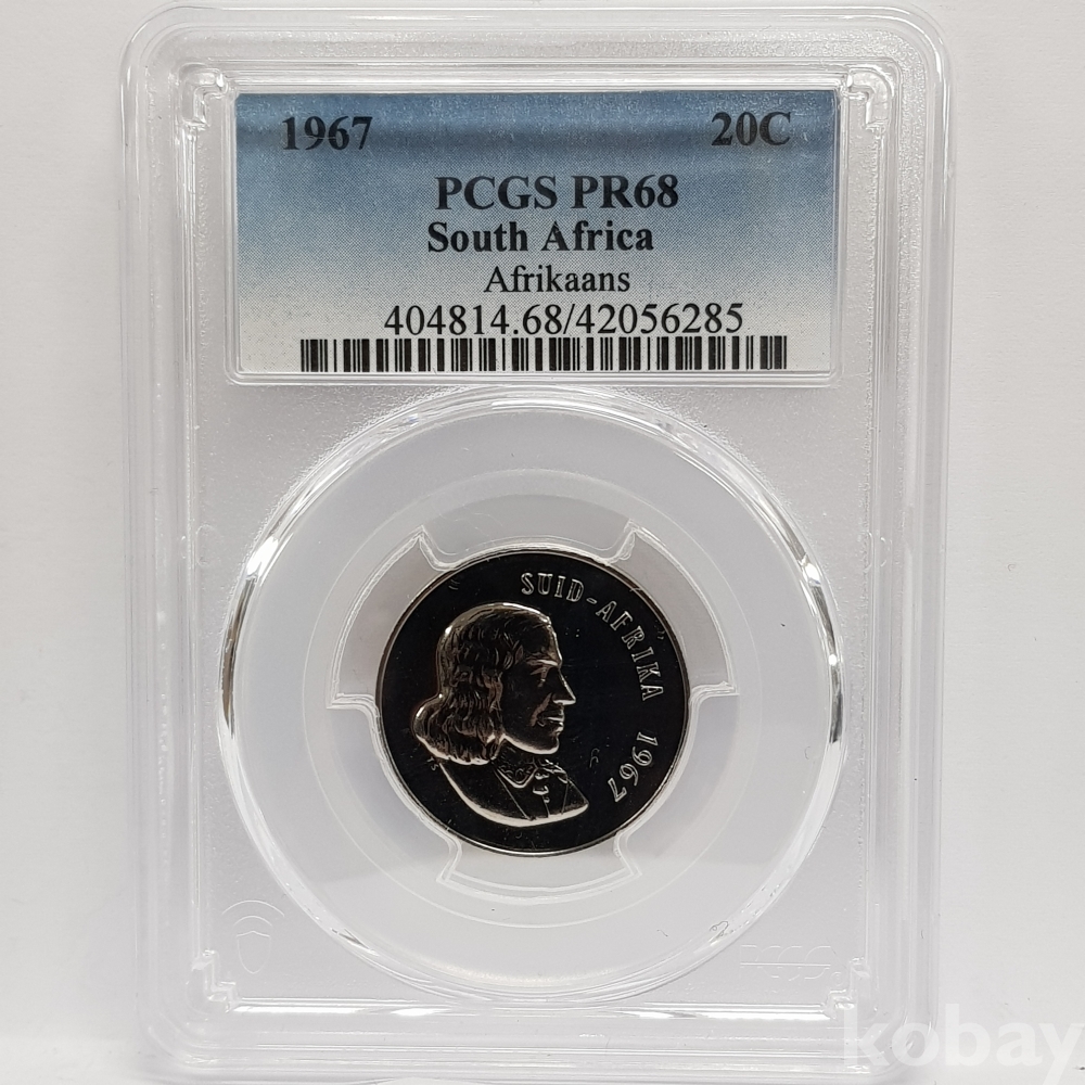 - 1967년 남아프리카공화국 20센트 얀 반 리베크 PCGS PR 68 그레이딩 주화