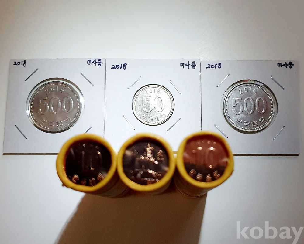 ♤ 2022년 10원 3롤, 2018년 500원 2점, 2018년 50원 1점, 미사용