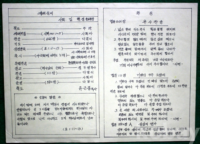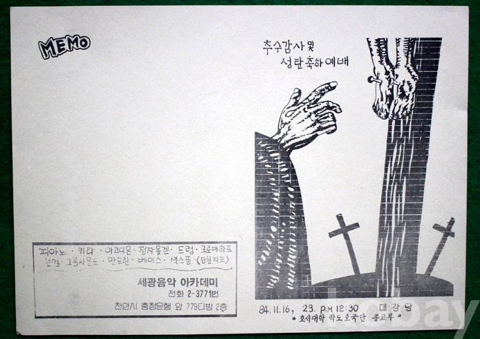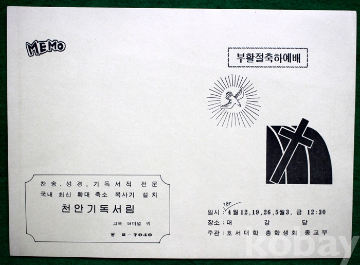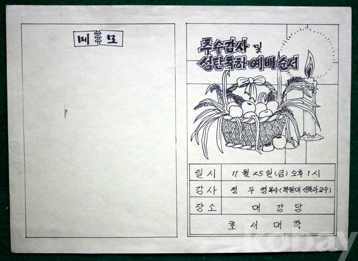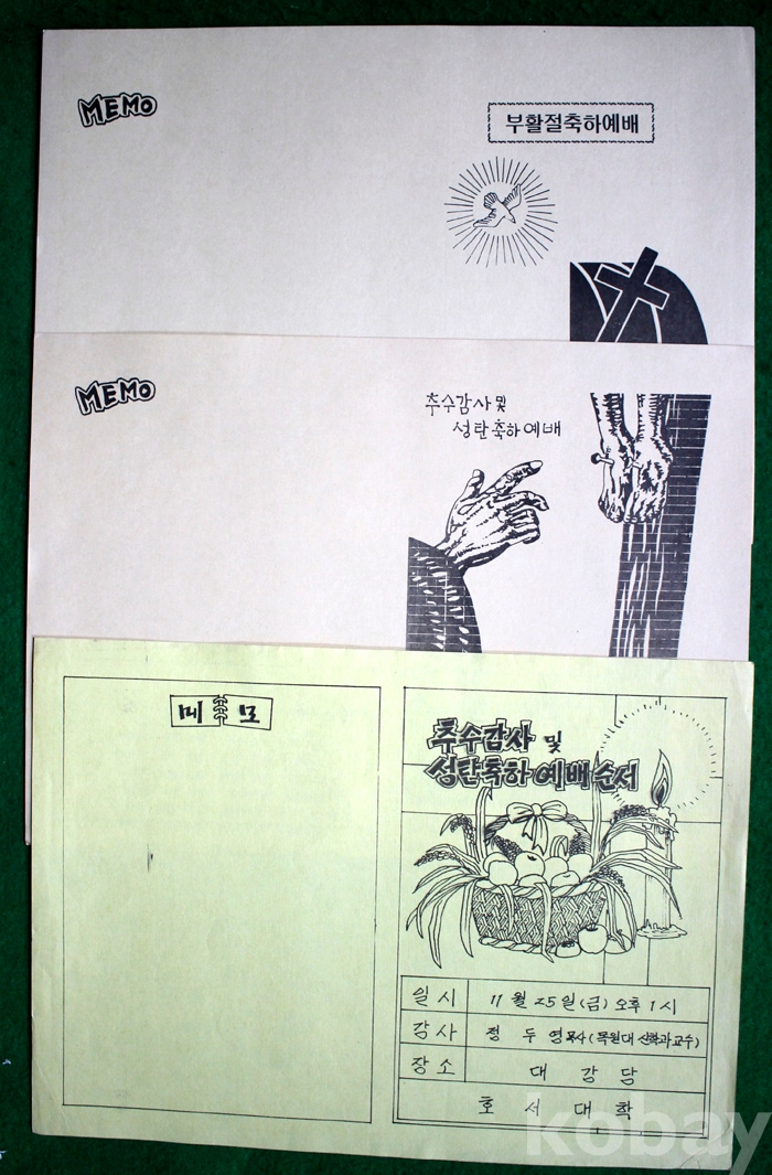 부활절. 추수감사절 및 성탄축하예배 안내지 3종 - 84. 85년 / 호서대학 총학생회 종교부 발행...