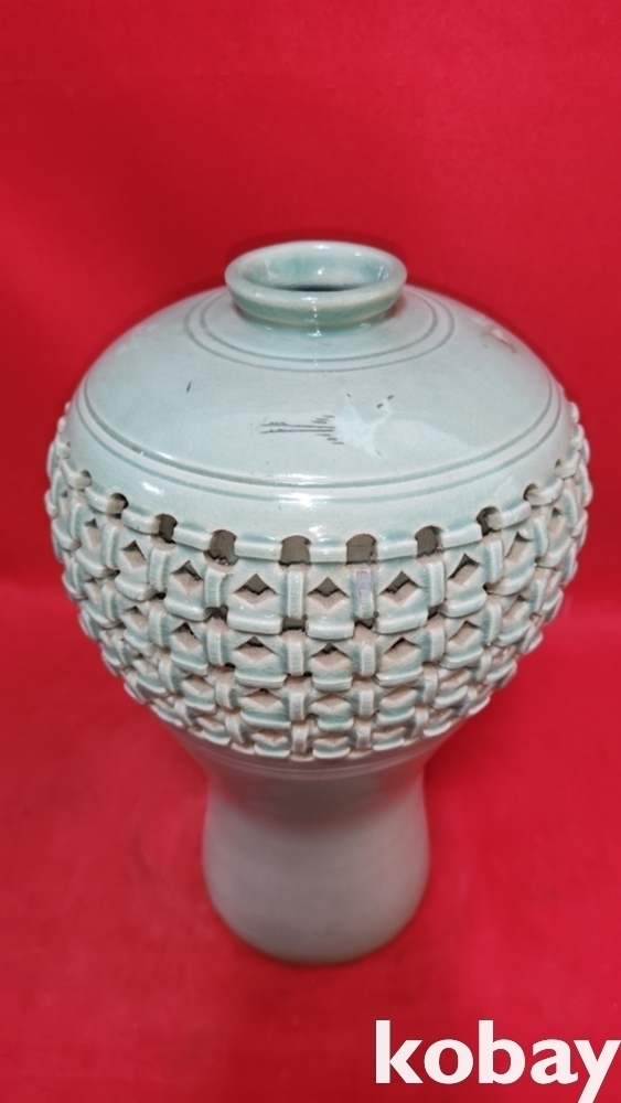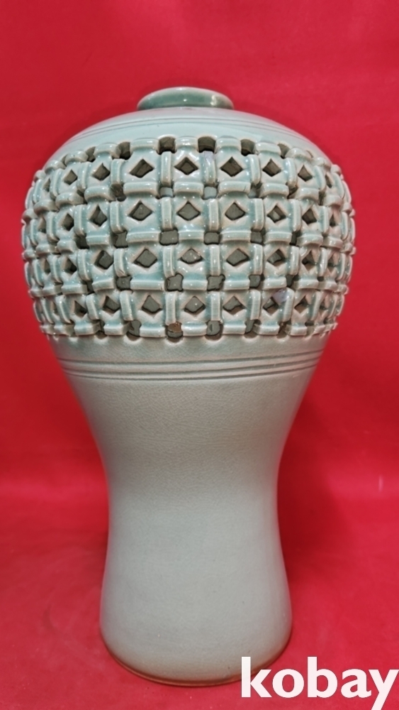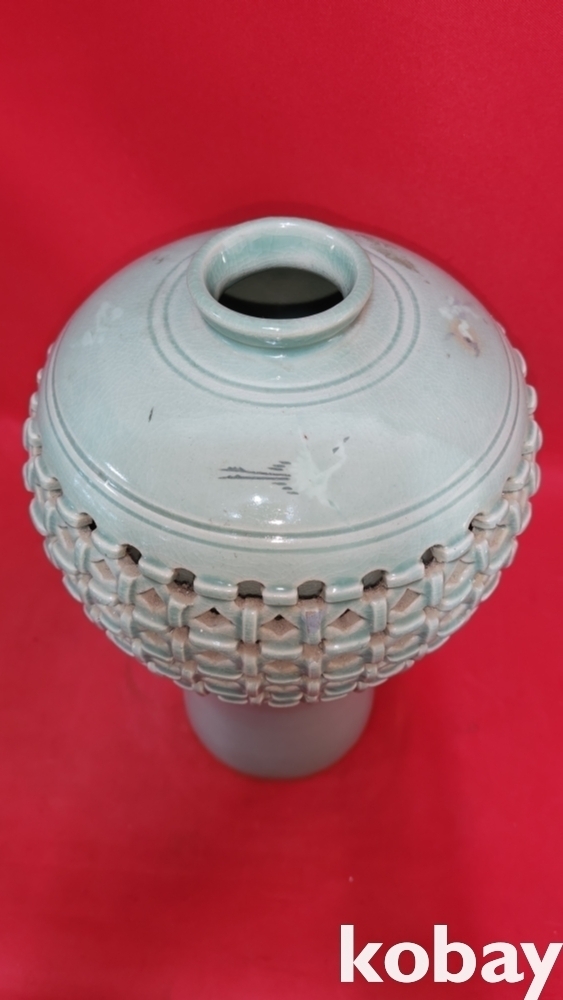 청산도예 비색청자 ( 翡色 靑磁) 투각 구름과 학(雲鶴)문양 매병입니다,