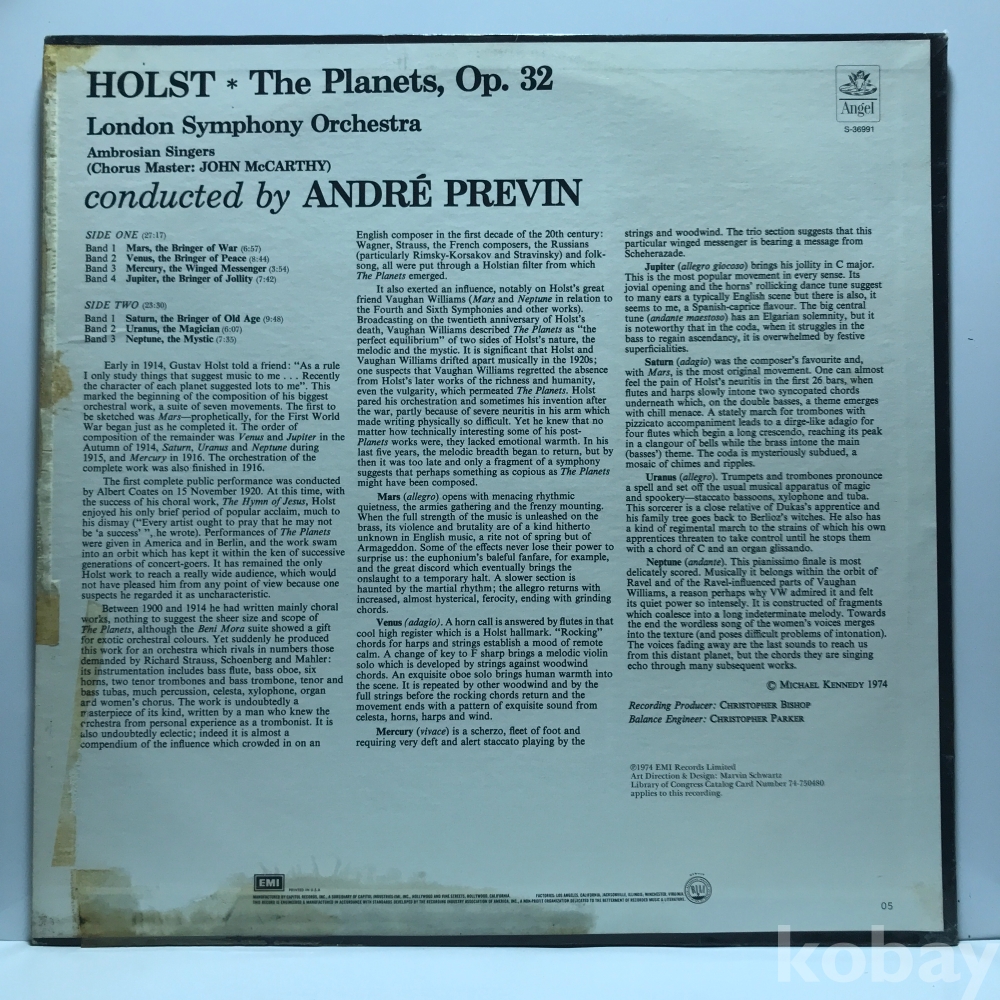 LP 81,350-16 HOLST / ANDRÉ PREVIN - THE PLANETS _ 자켓 EX- 알판 EX+ 74 년 수입
