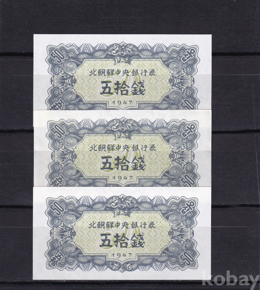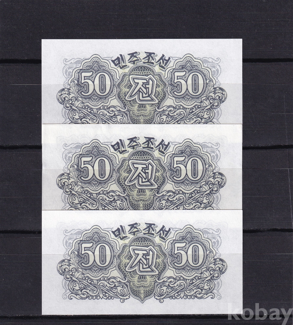 -희귀- 윗동네 1947년 무투문 오리지널 50전 미사용 지폐 -3장 일괄