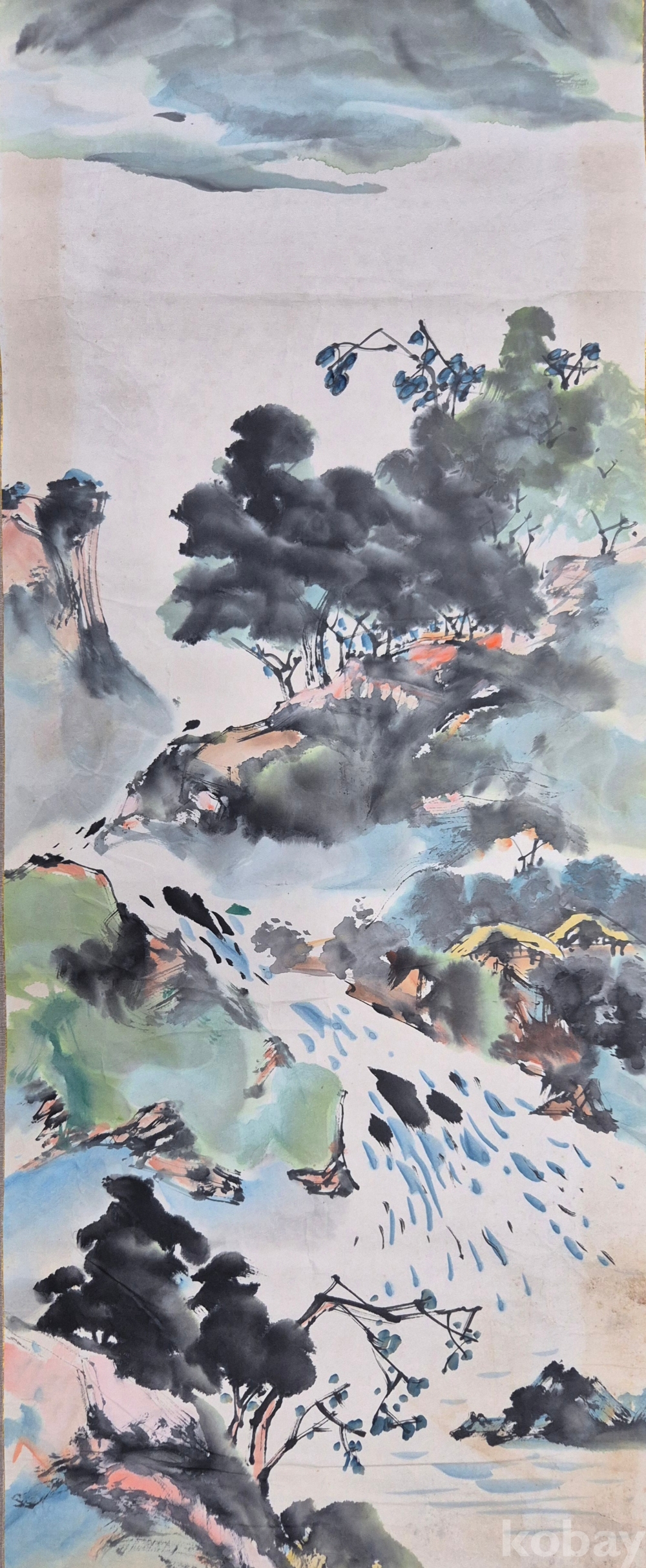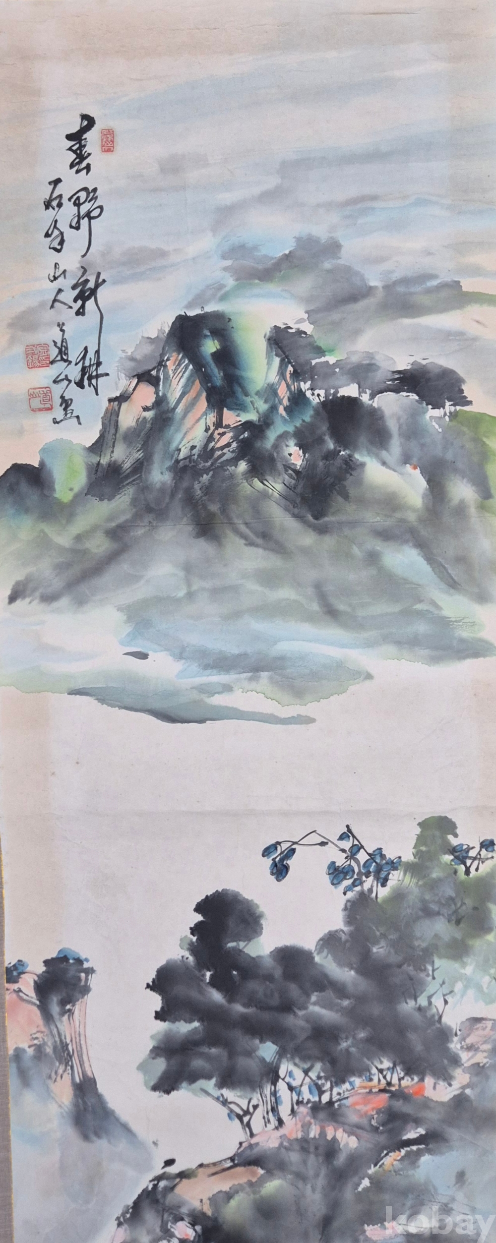 현대적 기법으로 잘 그려진 상당한 수준의 화가분 작품 추정되는 멋진 산수화'이오니 작품 이미지상