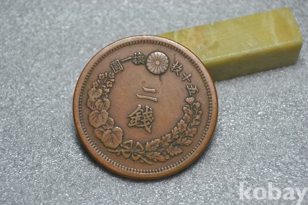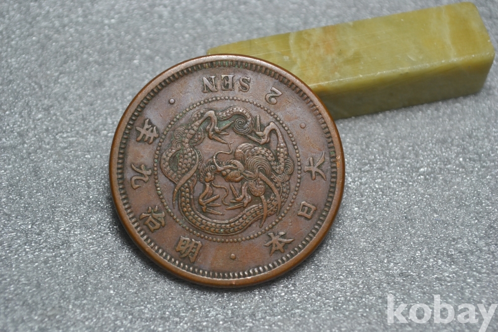 ㅡ> 100년 넘는 오래된 명치9년도(1876년도) 일본 대형 용 2전청동화 입니다.