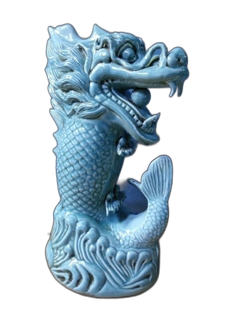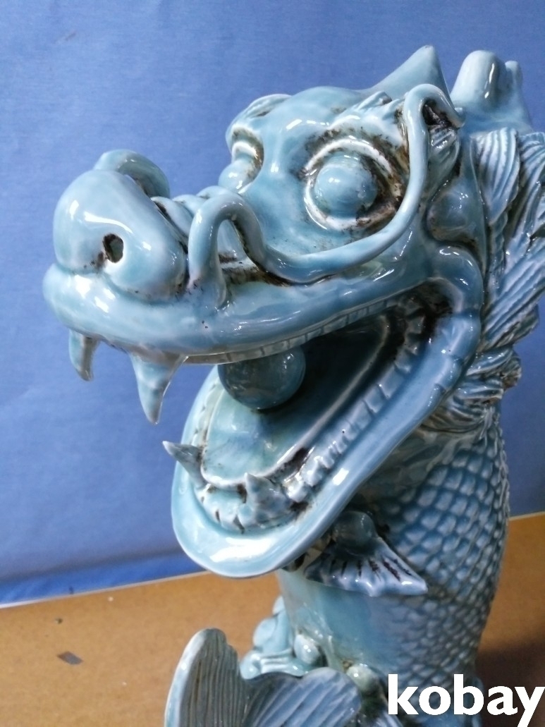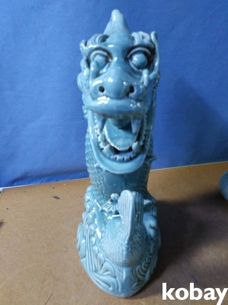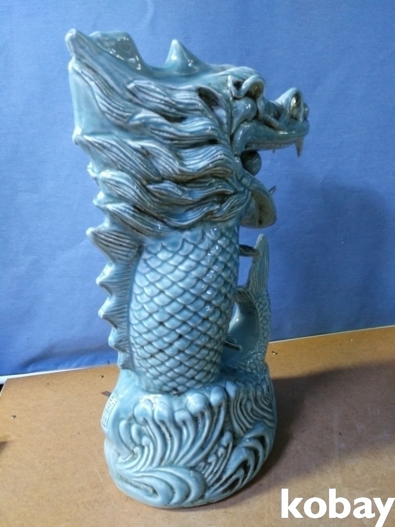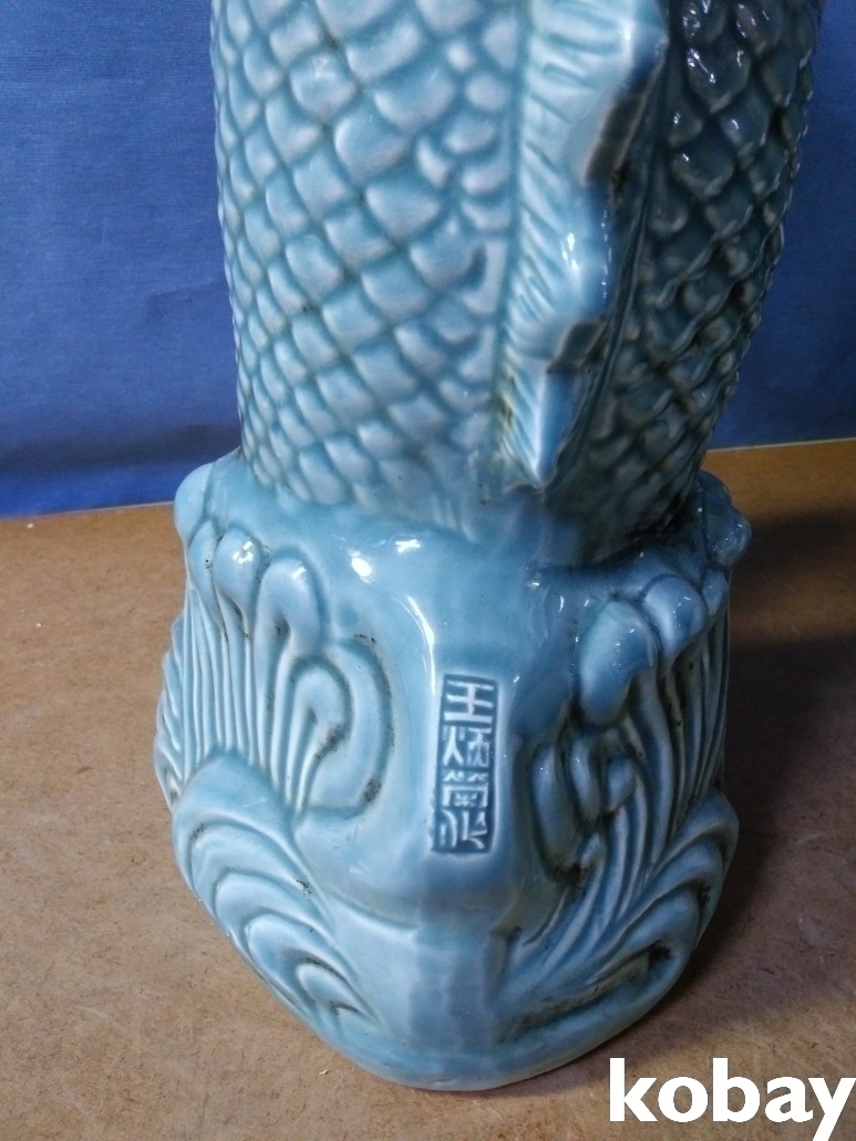 섬세하게 표현된 용머리에 물고기 몸통 도자기 입니다.