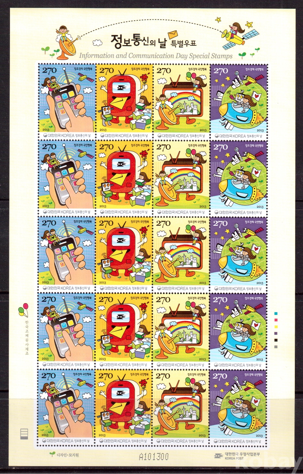 (한국전지) 2013.4.22 정보통신의 날 sheet of 20 MNH