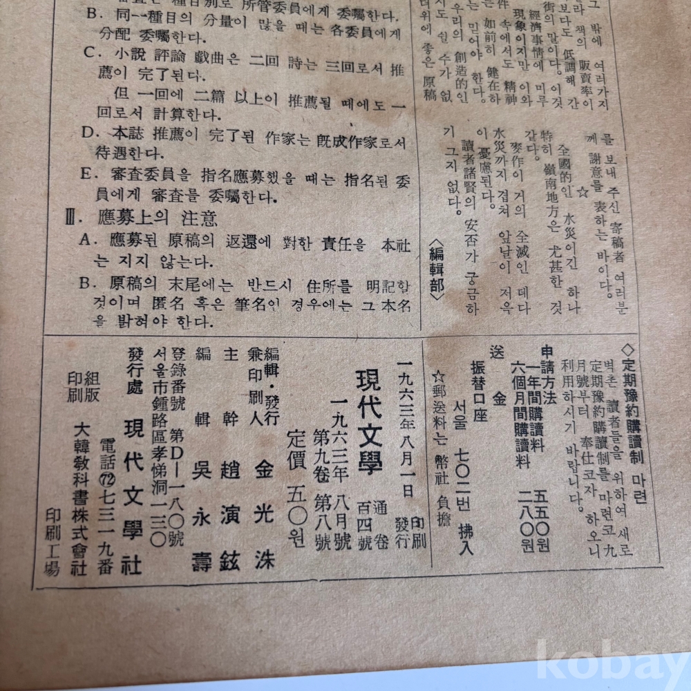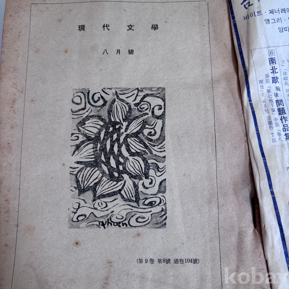 김환기 장정 현대문학 1963년 8월호 입니다.