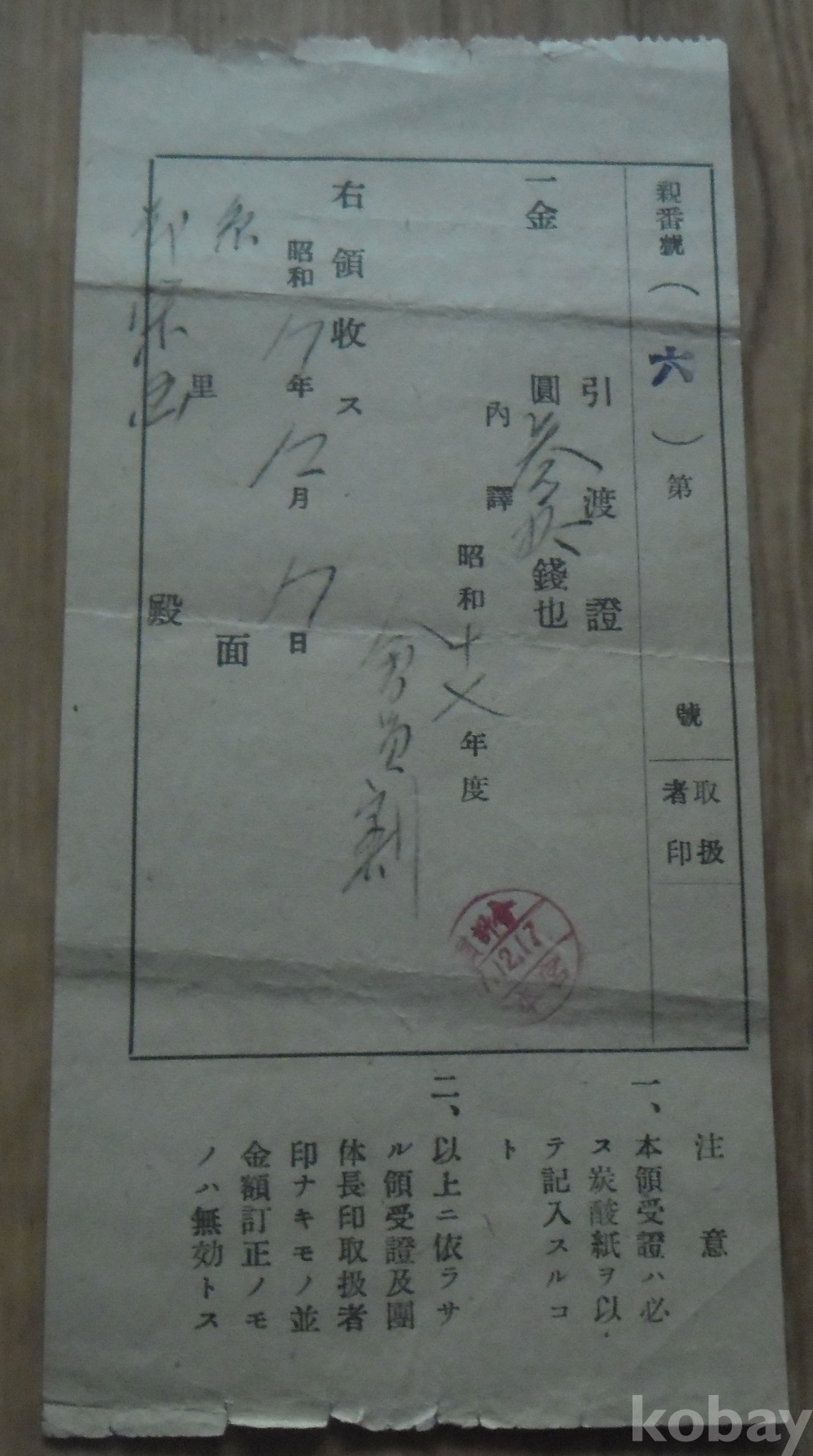 소화17년 발행 영수증