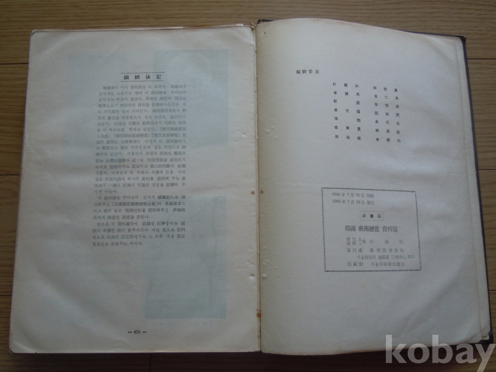 한국예술총람 / 1965년 초판본 / 대한민국예술원 / 큰판형 452쪽 / 희귀 도판 다수 수록 /