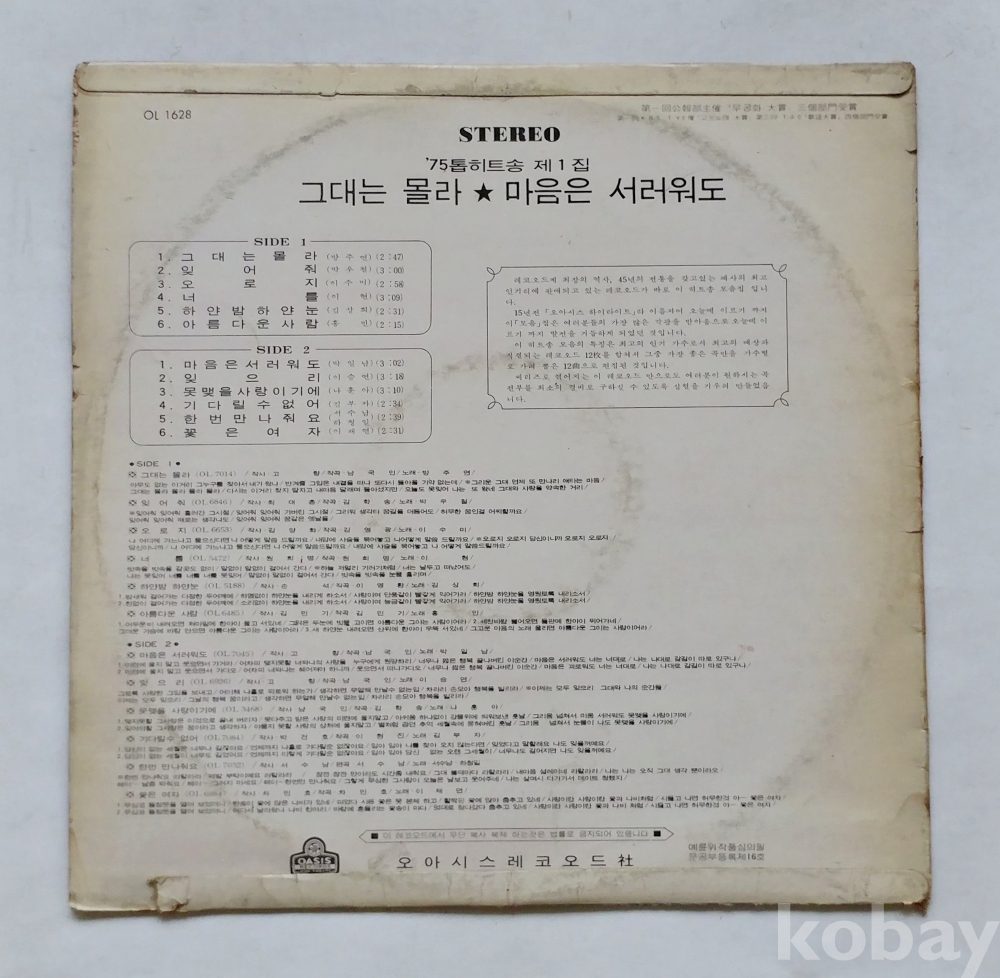 #847_75 오아시스 히트송 LP