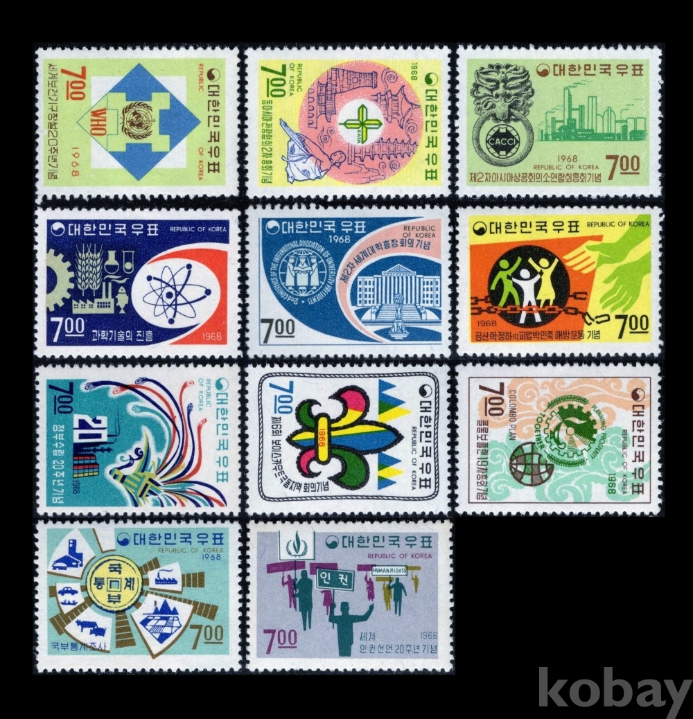 1968년 기념우표 13종, MNH OG
