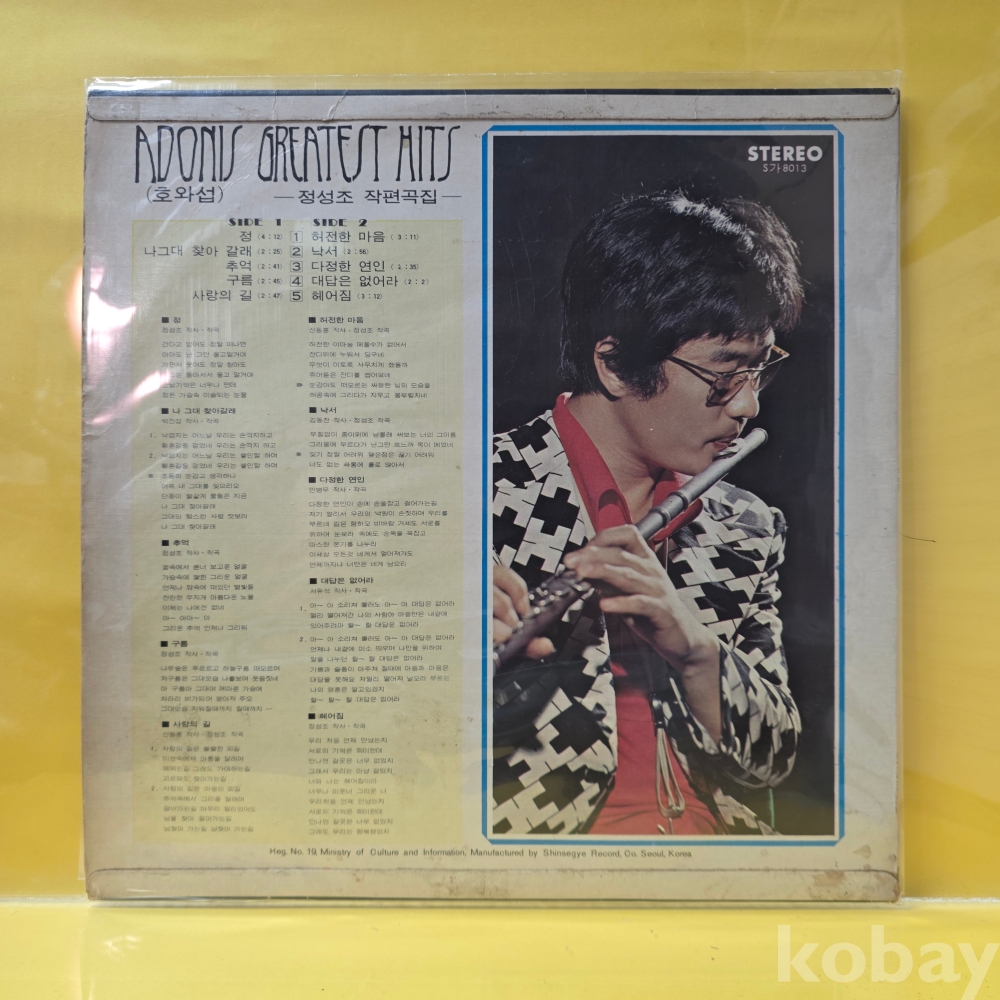 | 자켓상태 | EX : 약간의 마모, 모서리 찢김 존재 | 음반상태 | NM : 개봉했으나 미사용급, 스크래치 없음 | 발매정보 | 초반 | 가사지여부 | 무 |