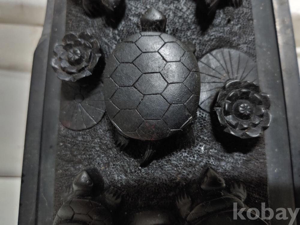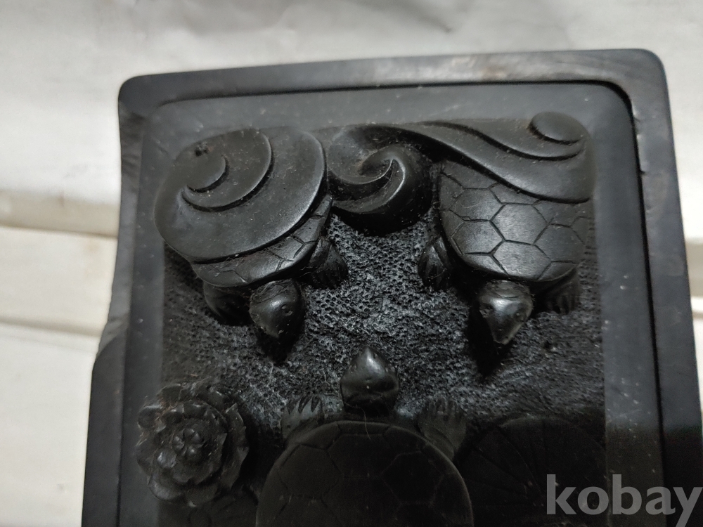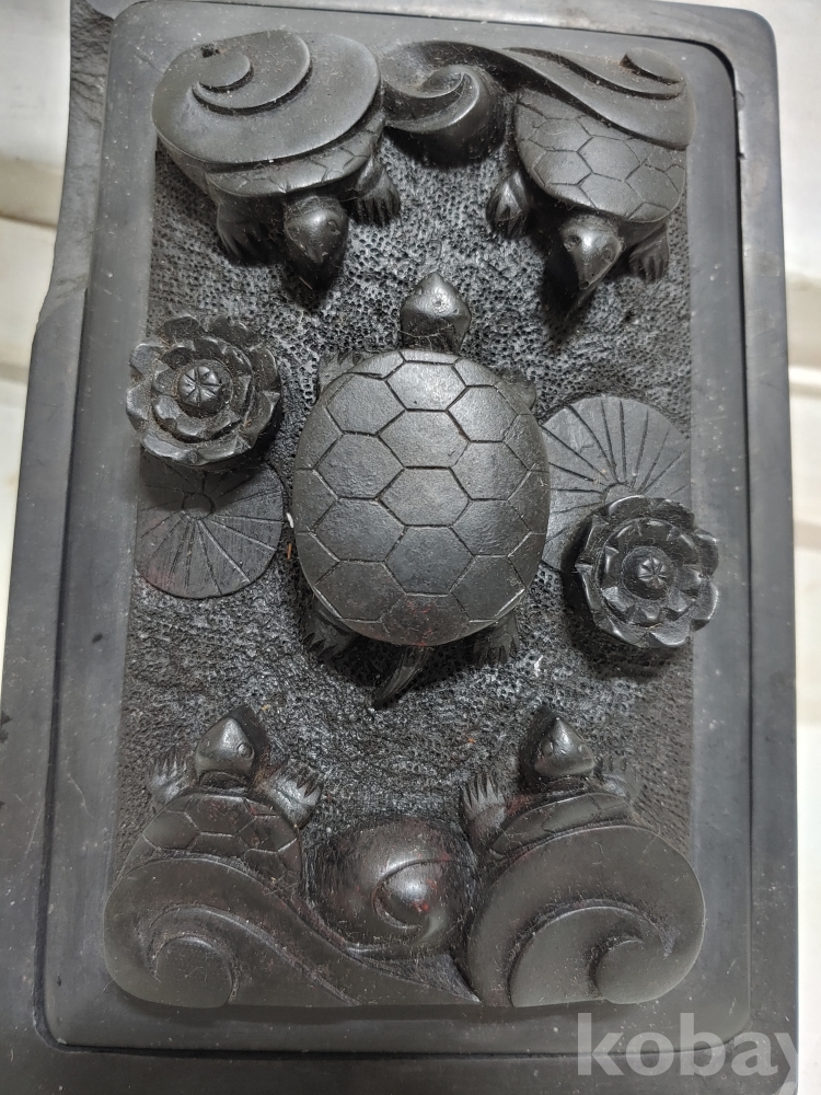 예쁜 거북 문양의 벼루의 한곳에 팀이 있으오니 참고로 하여 주세요