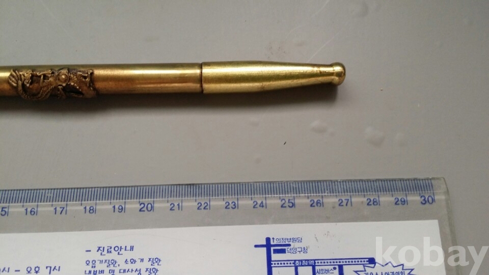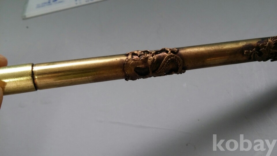 황동재질의 용문양이 장식되어 있는 담배대입니다. 특이하게도 2단으로 되어 있고 상태도 매우 좋습니다