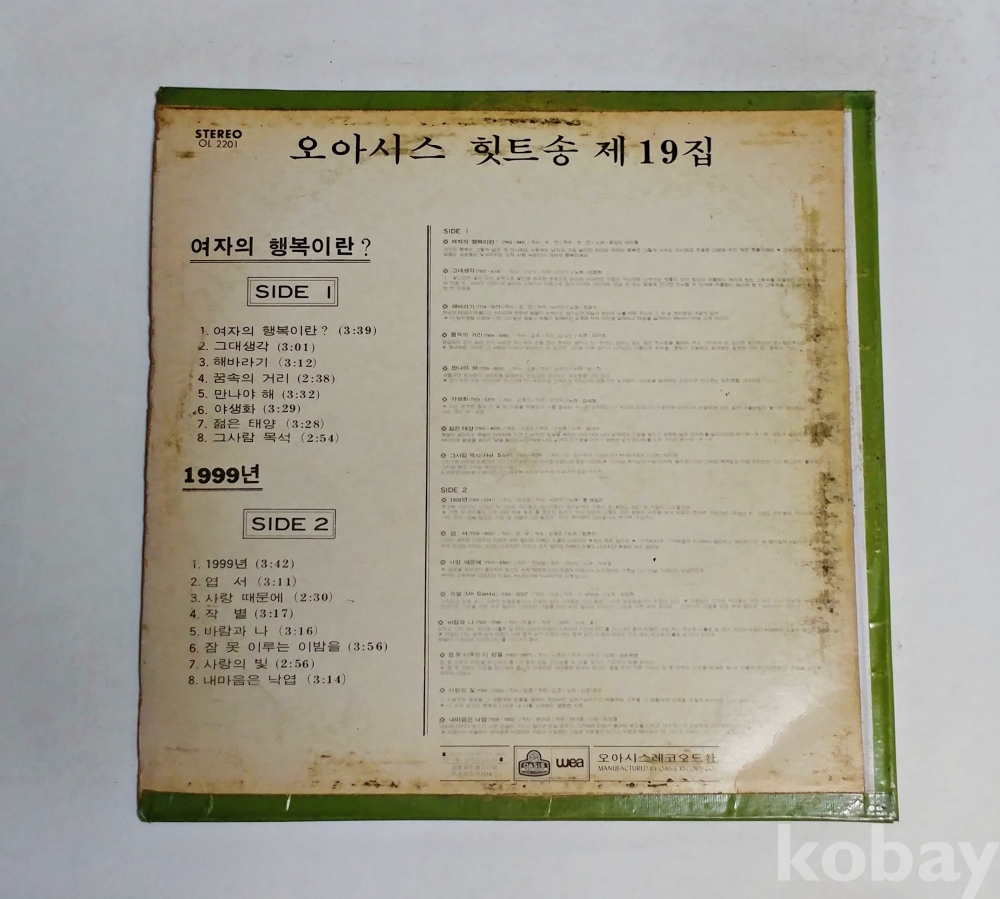 | 자켓상태 | VG : 주름, 접힘, 모서리 찢김 다수 | 음반상태 | EX : 재생에 영향 없는 가벼운 기스 존재 | 발매정보 | 알수없음 | 가사지여부 | 무 |