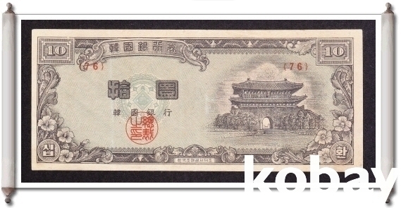 한국은행 10환 황색지 4286년 입니다.