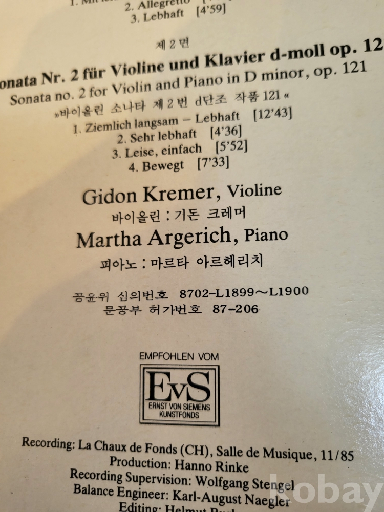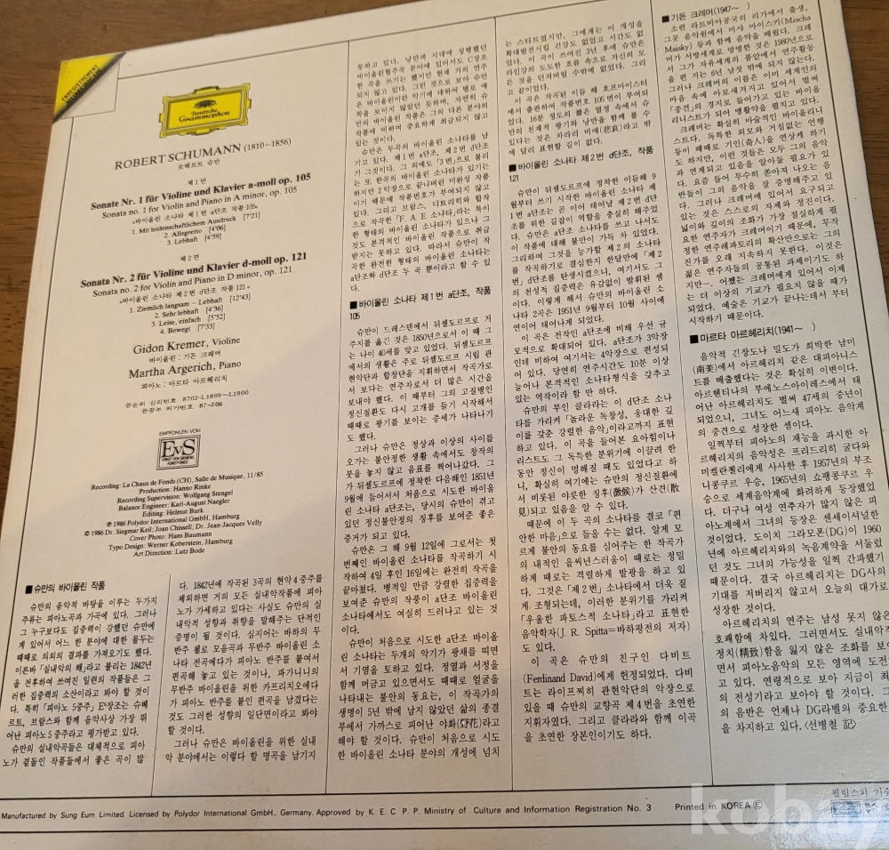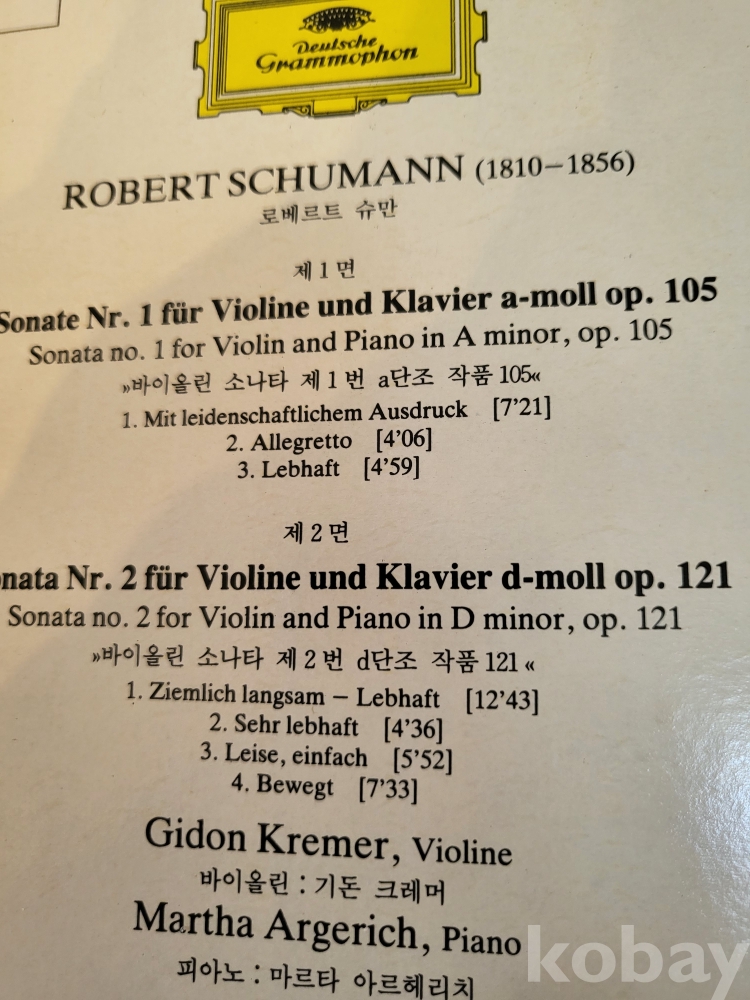 LP/단순개봉미사용 ((바이올린 의 세계적인 거장 ☆기돈 크래머☆ 피아노 의시인 ☆마르타 아르헤르치☆))☆((클래식 명반))