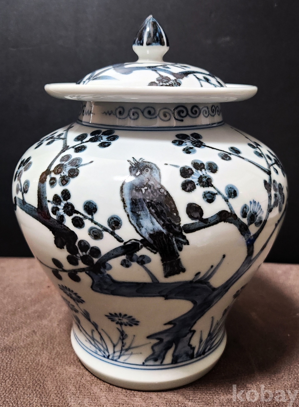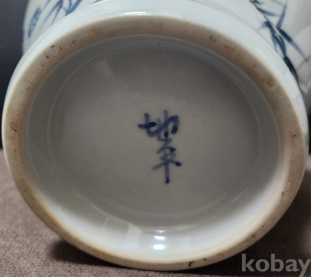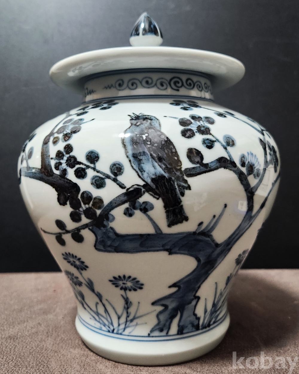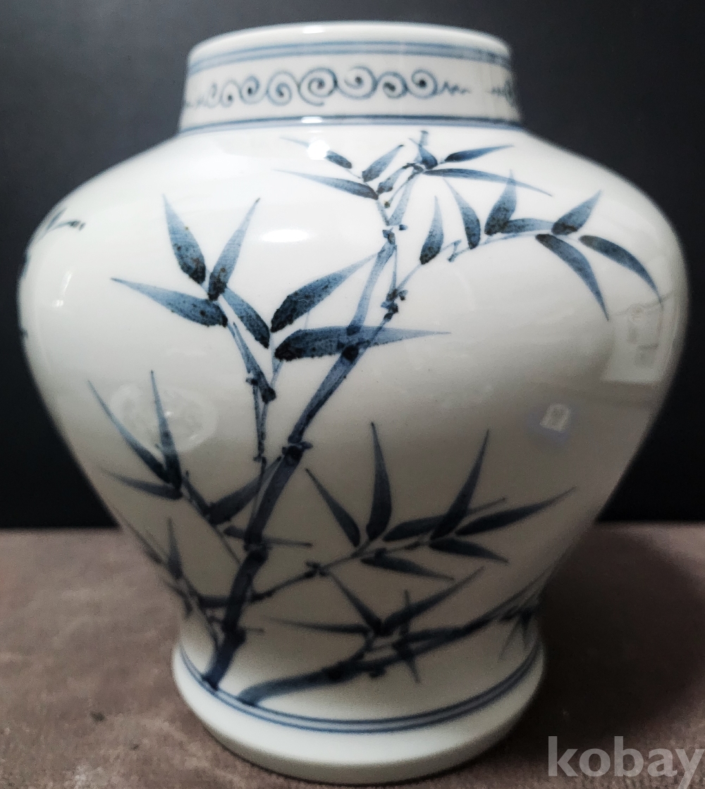 백자청화진사죽매조도문유개호 白磁靑華辰沙竹梅鳥圖紋有蓋壺