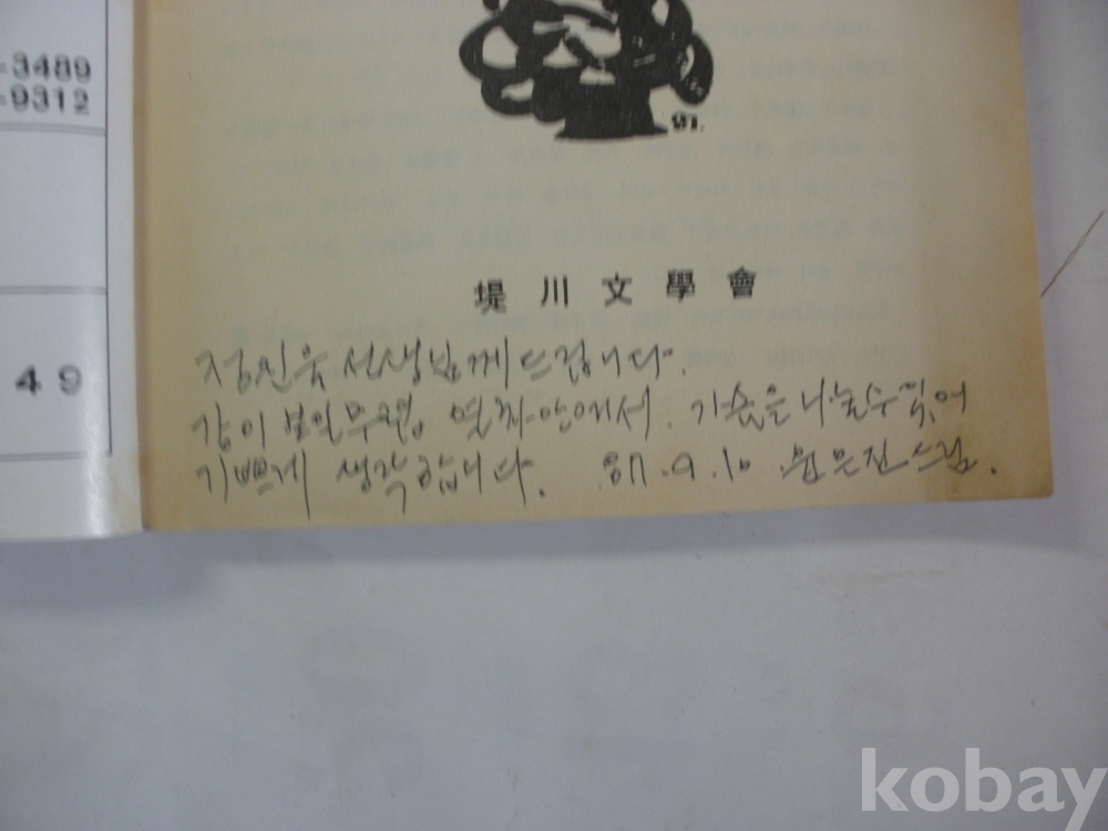 제천문학 -정진욱 선생님께 드립니다..열차안에서 가슴을 나눌수 있어..(1987년, 제천문학회)