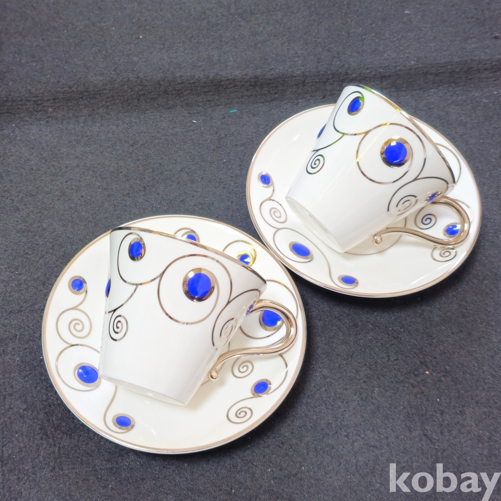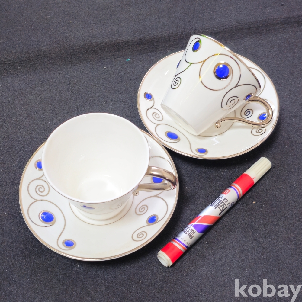 (((도자기커피잔))) 오래전 한국도자기에서만든 디자인이 이쁜 커플 도자기 커피잔/잔받침 (BLUE SAPPHIRE)
