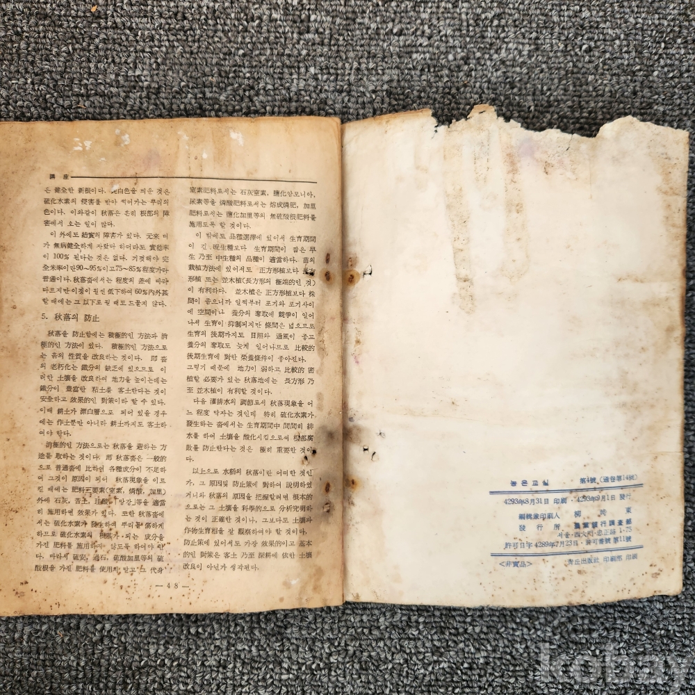 *60년대 이전 포함 ~ 80년대의 옛날 책들의 <낙장, 세월의 흔적, 훼손> 등은 경매 시작가격이 그 상태를 반영한 가격이기 때문에 해당 사유로 반품 불가하오니 감안하시고 입찰 부탁드립니다. 이 와 같은 사항이 구매 결정에 중요한 사항이라면 입찰을 피해주시길 부탁드립니다.