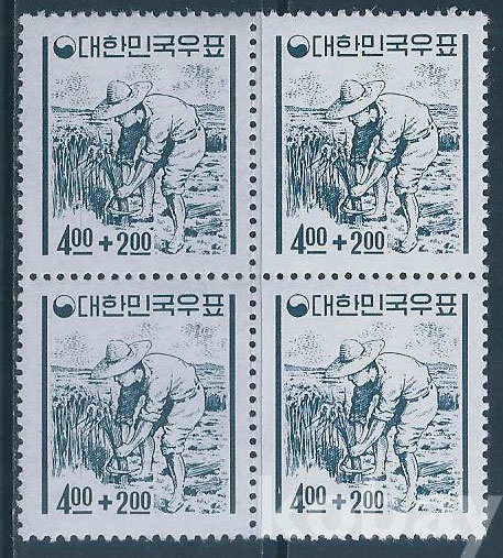 (한국우표-149)1965년3차수해구제모금우표4매블럭(미사용제)-MNH, VF