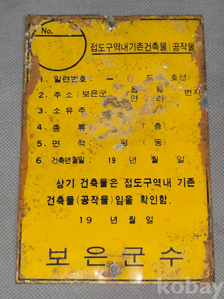 1960-70년대 보은군청 == 접도구역내 기존건축물(공작물) 확인증