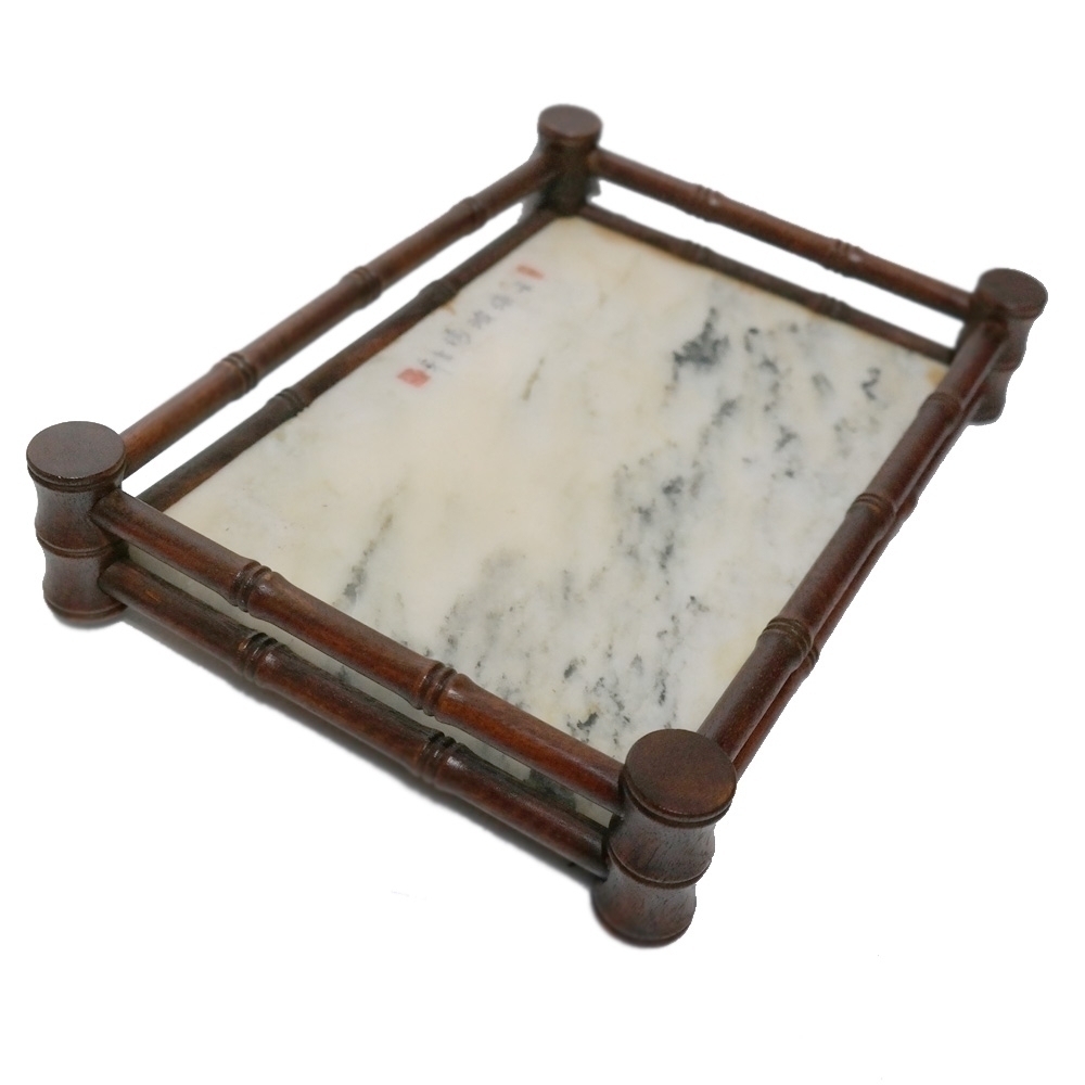 테두리는 대나무문양의 나무로 만들어진 골동품 재현작 쟁반 입니다.