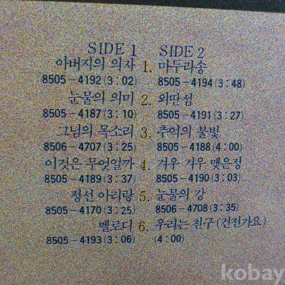 | 자켓상태 | EX : 약간의 마모, 모서리 찢김 존재 | 음반상태 | EX : 재생에 영향 없는 가벼운 기스 존재 | 발매정보 | 초반 | 가사지여부 | 유 |