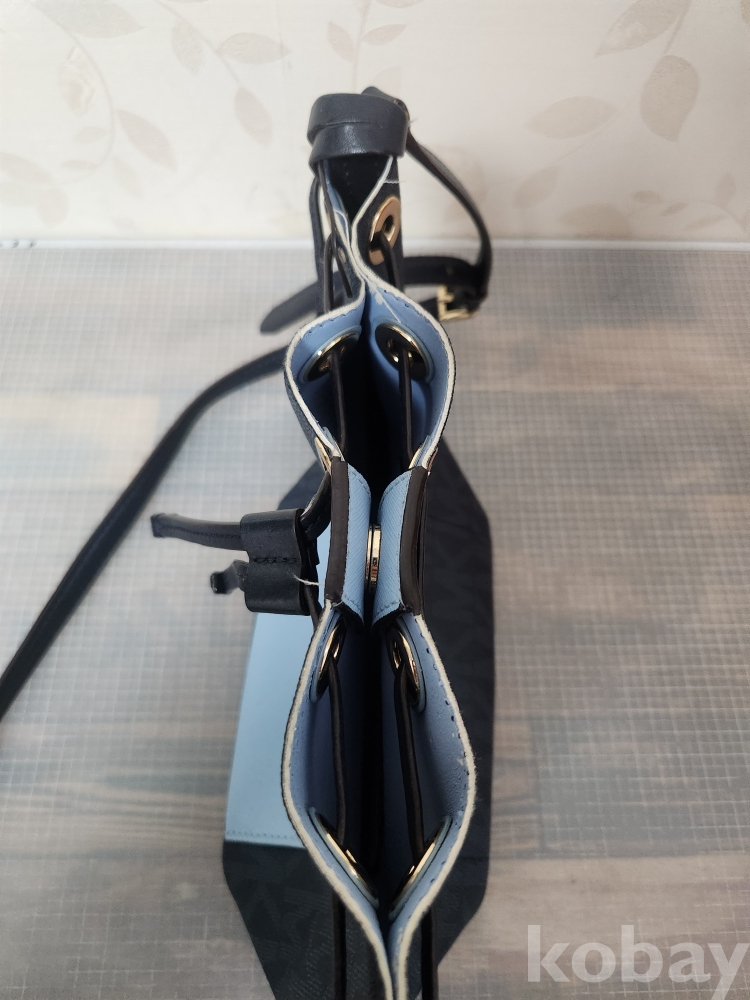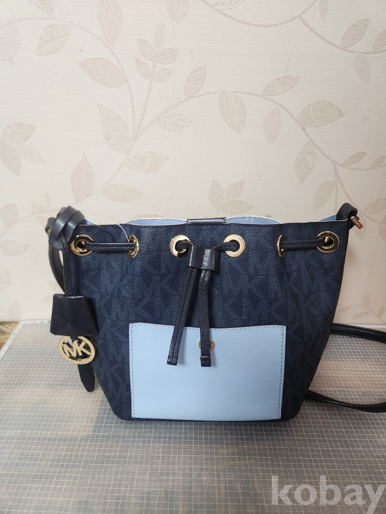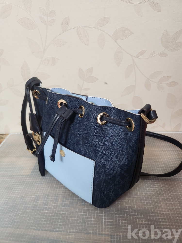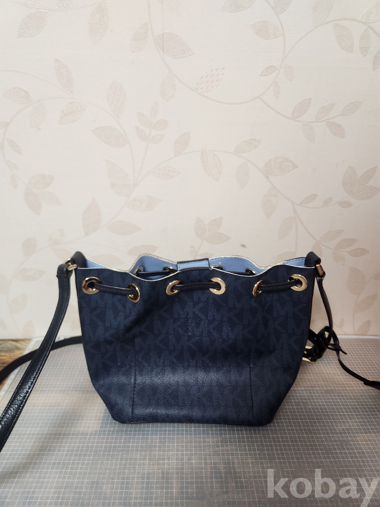 네이비 색상에 MK 로고 패턴이 전체적으로 들어가 있습니다 크로스백이나 숄더백으로 활용 가능합니다