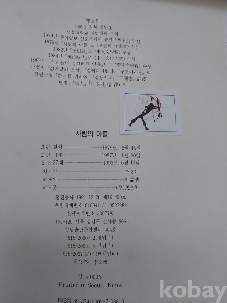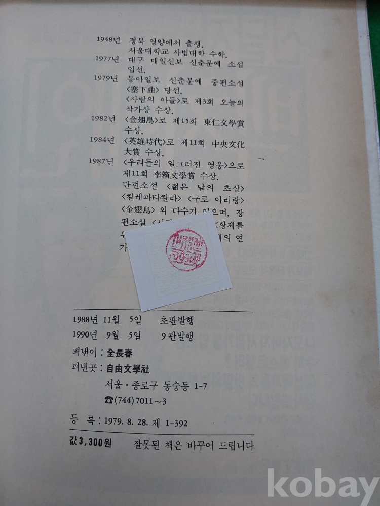 - 우리들의 일그리진 영웅 352P(주)문학사상사 1987년 이상 문학상 수상작품집 제11회 대상수상작