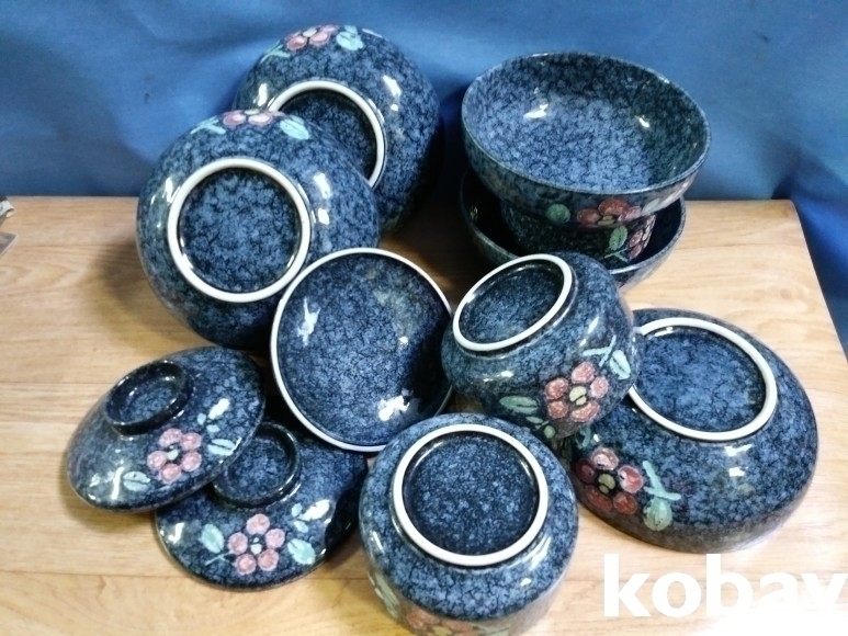 꽃 문양 밥그릇, 국 그릇 셋트 입니다.