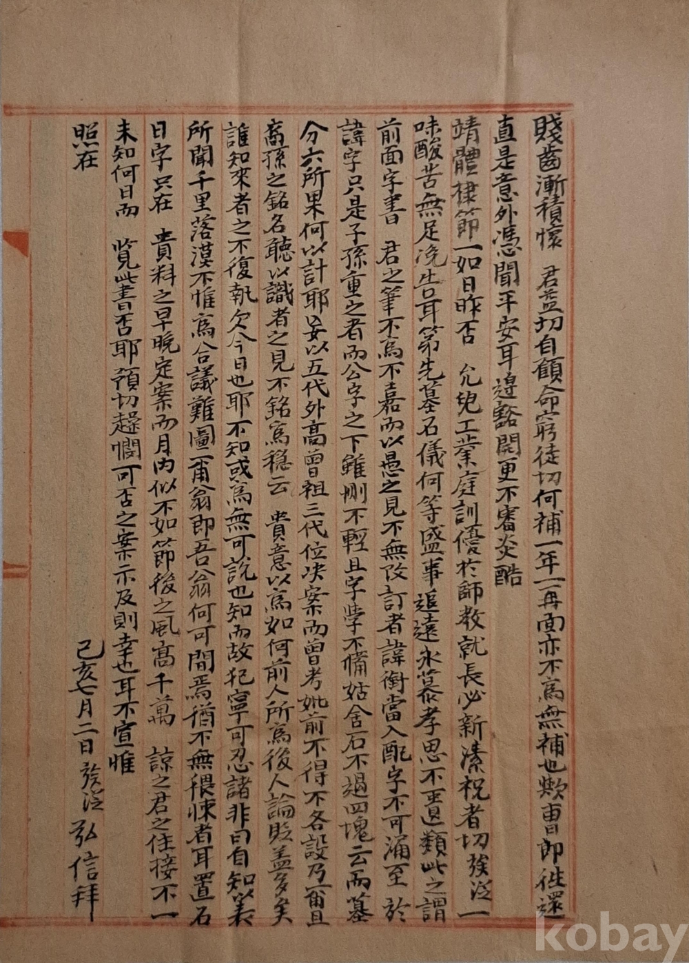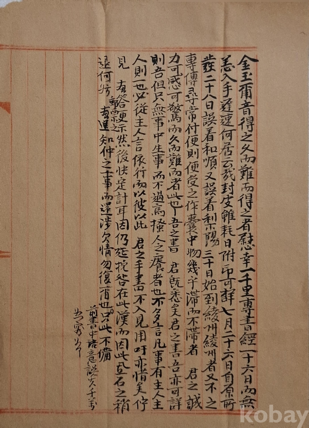 장흥군 장평면 우산리 김 생원 댁에 보낸 간찰.