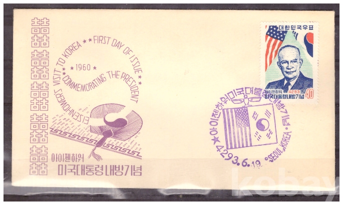 (초일봉피) 1960.6.19 아이젠하워 미국대통령 내방 기념 FDC (SEOUL,KOREA 4293.6.19)