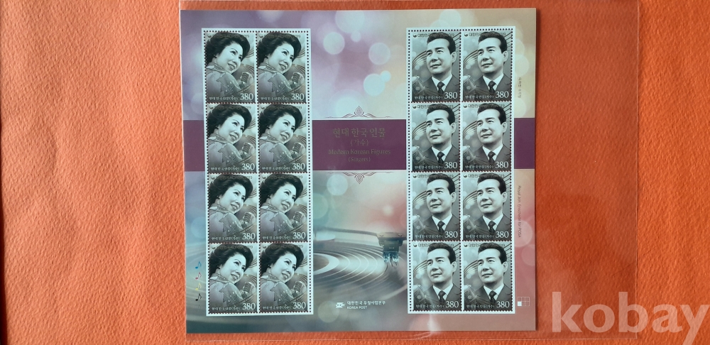 현대 한국 인물(가수) 16매 전지 입니다.