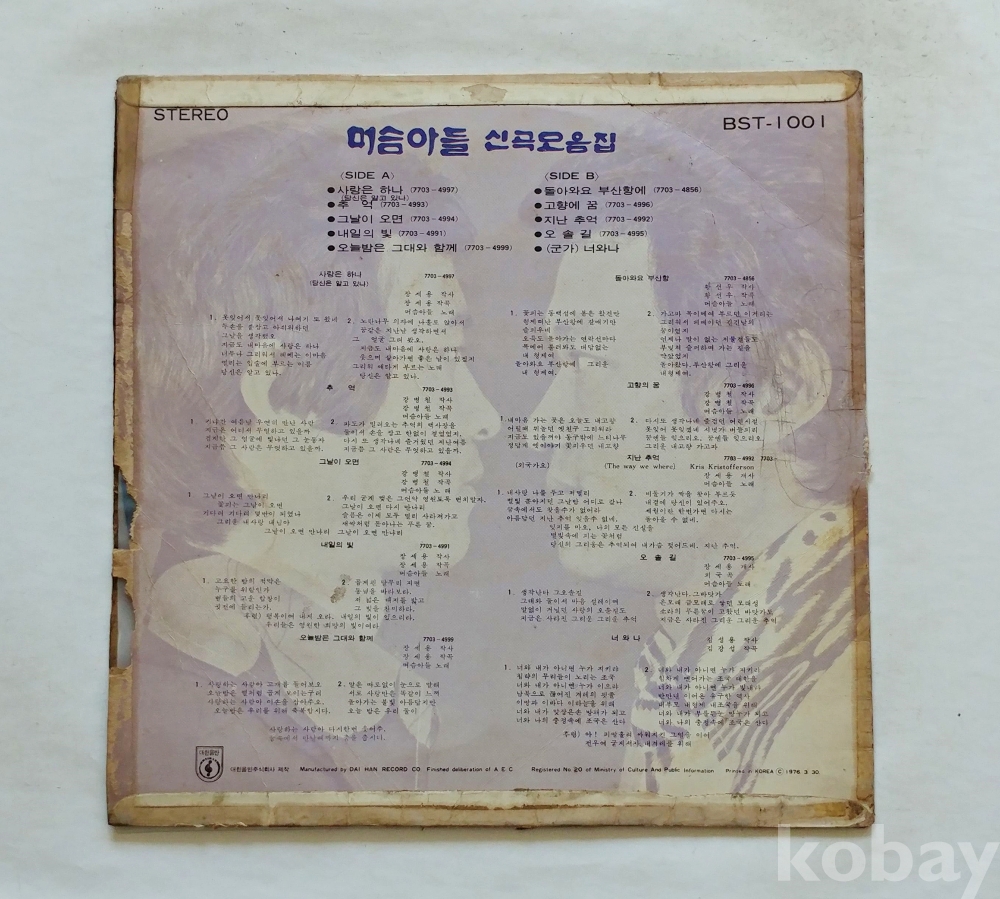 | 자켓상태 | EX : 약간의 마모, 모서리 찢김 존재 | 음반상태 | EX : 재생에 영향 없는 가벼운 기스 존재 | 발매정보 | 알수없음 | 가사지여부 | 무 |