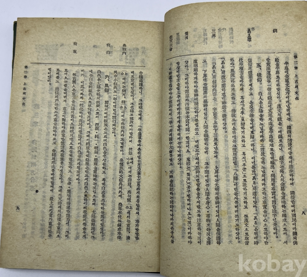 설 명 | 최남선(崔南善, 1890~1957)이 상고~최근세까지 한국의 역사에 대해 서술한 책이다. 최남선이 문화교류사의 관점에서 간행한 한국통사로 당시 한국어로 출간된 유일한 한국 역사서로 인기를 끌었다. 권두 내제지(內題紙)와 권말 판권지 앞장에 훼손이 있다. 이외에는 전체적으로 상태가 양호한 편이다. | |||||